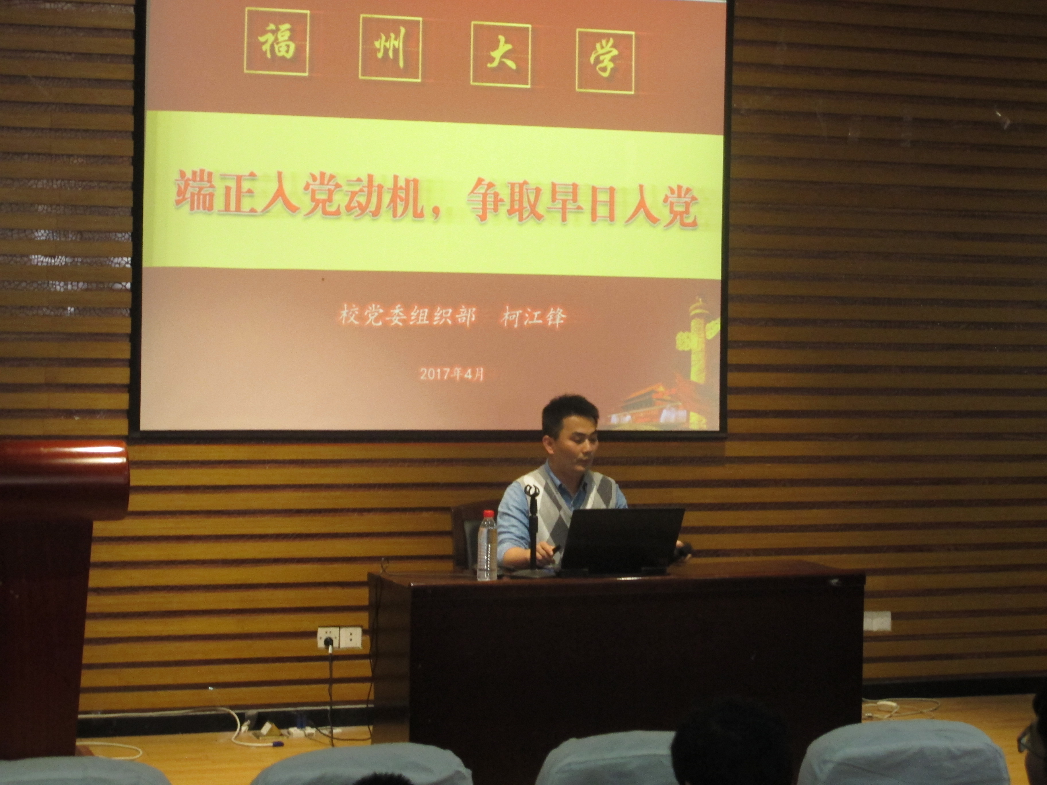 第一次入党积极分子培训课在新楚楼北230成功召开。本次党课的主题是“端正入党动机,争取早日入党”,校党委组织部的柯江锋老师为在场入党积极分子开了一场别来生面的讲座。
