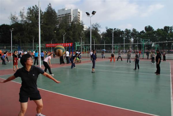 女教工排球队以不失一局的佳绩闯入决赛,对手是实力强劲的直属联队。赛 前,队员们早早来到了场地进行热身,啦啦队也整容强大,院党委书记兼教练陈冲老师也到场进行指导。三点整,比赛准时开始,第一局,成人影视片
