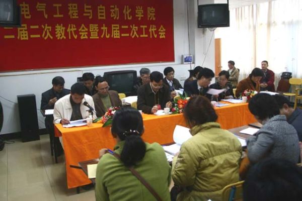 二届二次教代会暨九届二次工代会于2006年12月 28日胜利召开。会议高举邓小平理论伟大旗帜,以党的十六届六中全会精神和“三个代表”重要思想为指导,贯彻校第六届五次教代会暨第八届五次工代会的大会 精神,以学校“十一五”期间学校的办学指导思想,发展目标和主要思想为主线进行的,会议开得圆满成功。