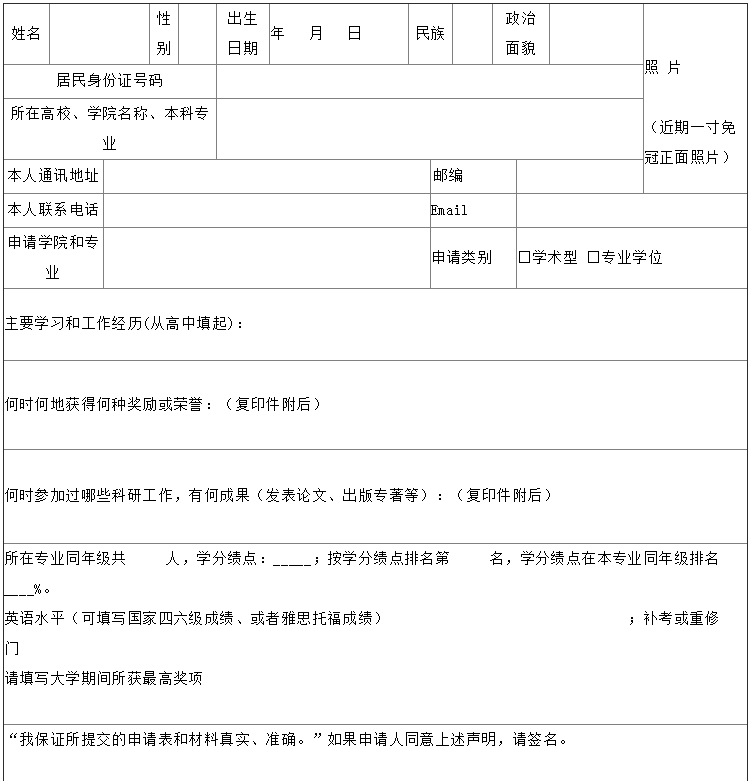 注:此表在9月28日教育部“推免服务系统”开通接收推免生报名之前做为预报名及到我学院复试上交材料之用,填此表的同学还须教育部“推免服务系统”报名,最终的复试及录取相关程序都需要在研招网上进行操作。