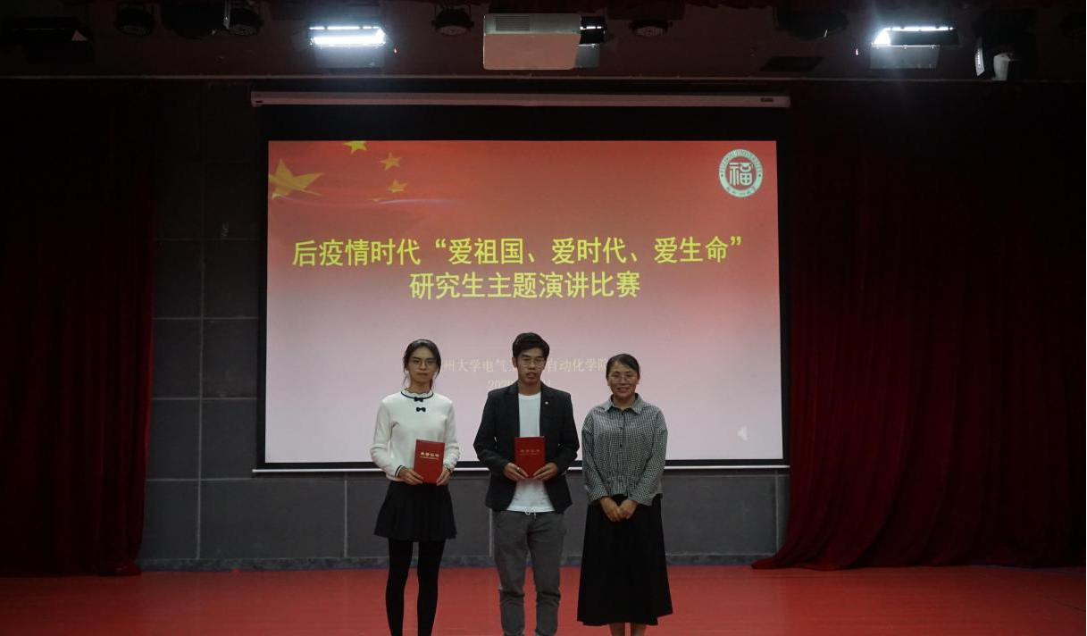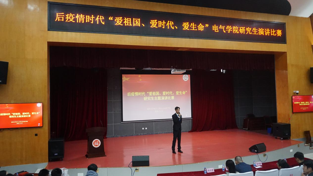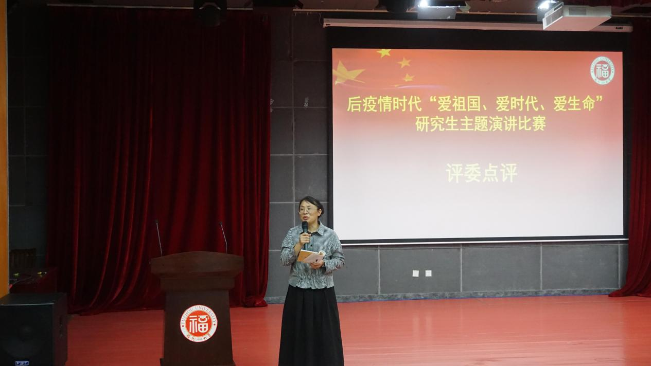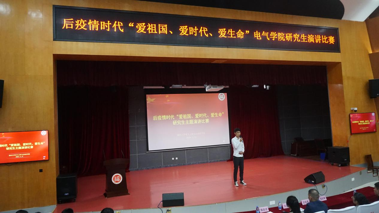后疫情时代“爱祖国、爱时代、爱生命”研究生主题演讲比赛在校图书馆明德厅顺利落幕。本次大赛是围绕“爱国家、爱时代、爱生命”开展的主题教育演讲比赛,目的在于引导广大师生树立正确的人生观与价值观,继承和发扬爱国主义传统,实现人生价值,追求生命的意义。担任本次比赛的评委有学院团委书记沈庆斌老师、研究生辅导员许海燕老师、研会主席张钰健同学和研会副主席陈舒迪同学。