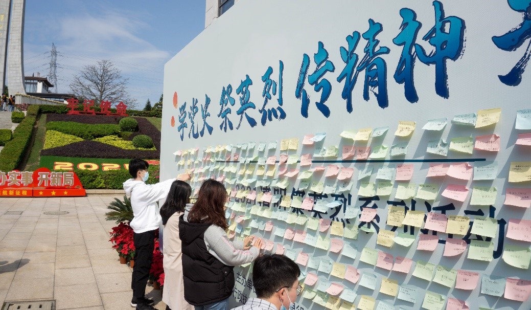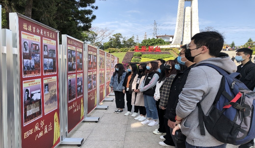 “桃花红雨英雄血,碧海丹霞志士心”。仪式结束后,同学们一同参观了《八闽丰碑--福建革命英烈事迹展》,该展览分为碧血丹心为工农、披荆斩棘创苏区、献身为民谋福祉等部分,展出林祥谦、王荷波、蔡协民、陈可珠、谷文昌、郑忠华、陈祥榕等革命英烈的先进事迹,同学们深切地感受到革命先烈追求真理的坚定信念和浴血奋战的大无畏革命精神,并在卡片上写下自己的感触,张贴在烈士馆门口的留言板上。