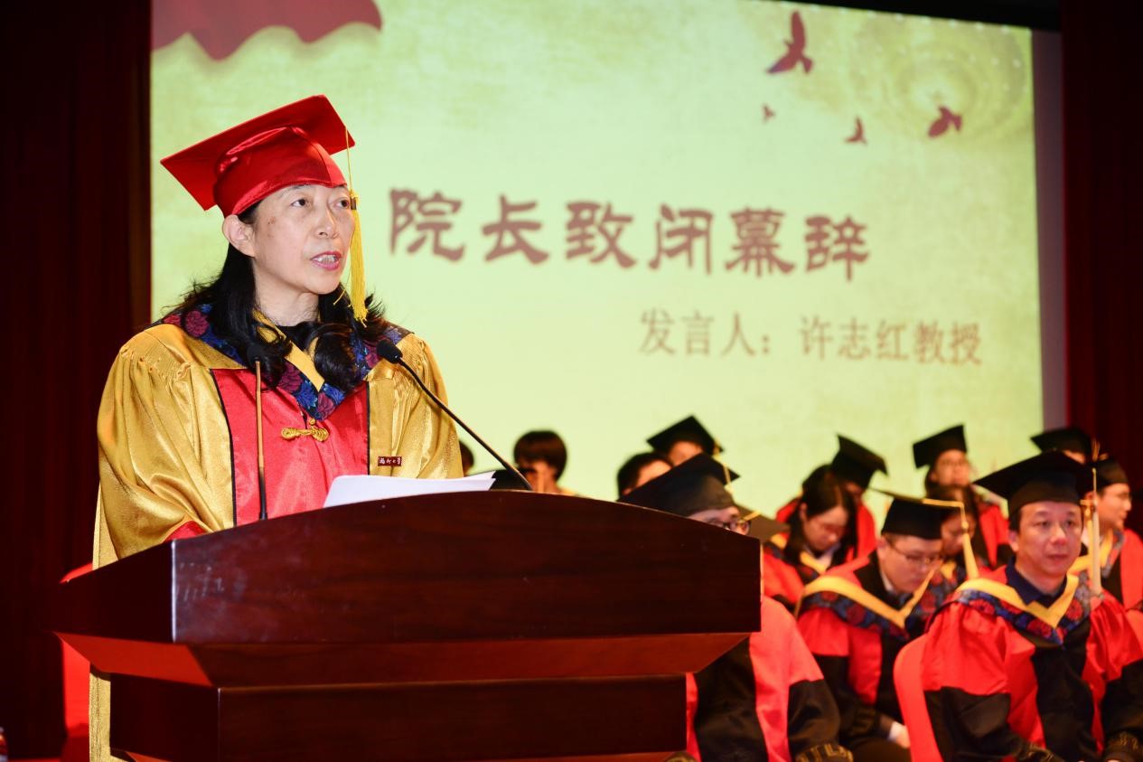 院长许志红教授为毕业生做毕业结语,希望同学们无论顺境还是逆境,要敢于竞争,开拓创新,保持一种坚韧不拔,奋发向上的精神状态,扎实工作,努力奋斗,以一种只争朝夕的精神去开创属于自己的未来。