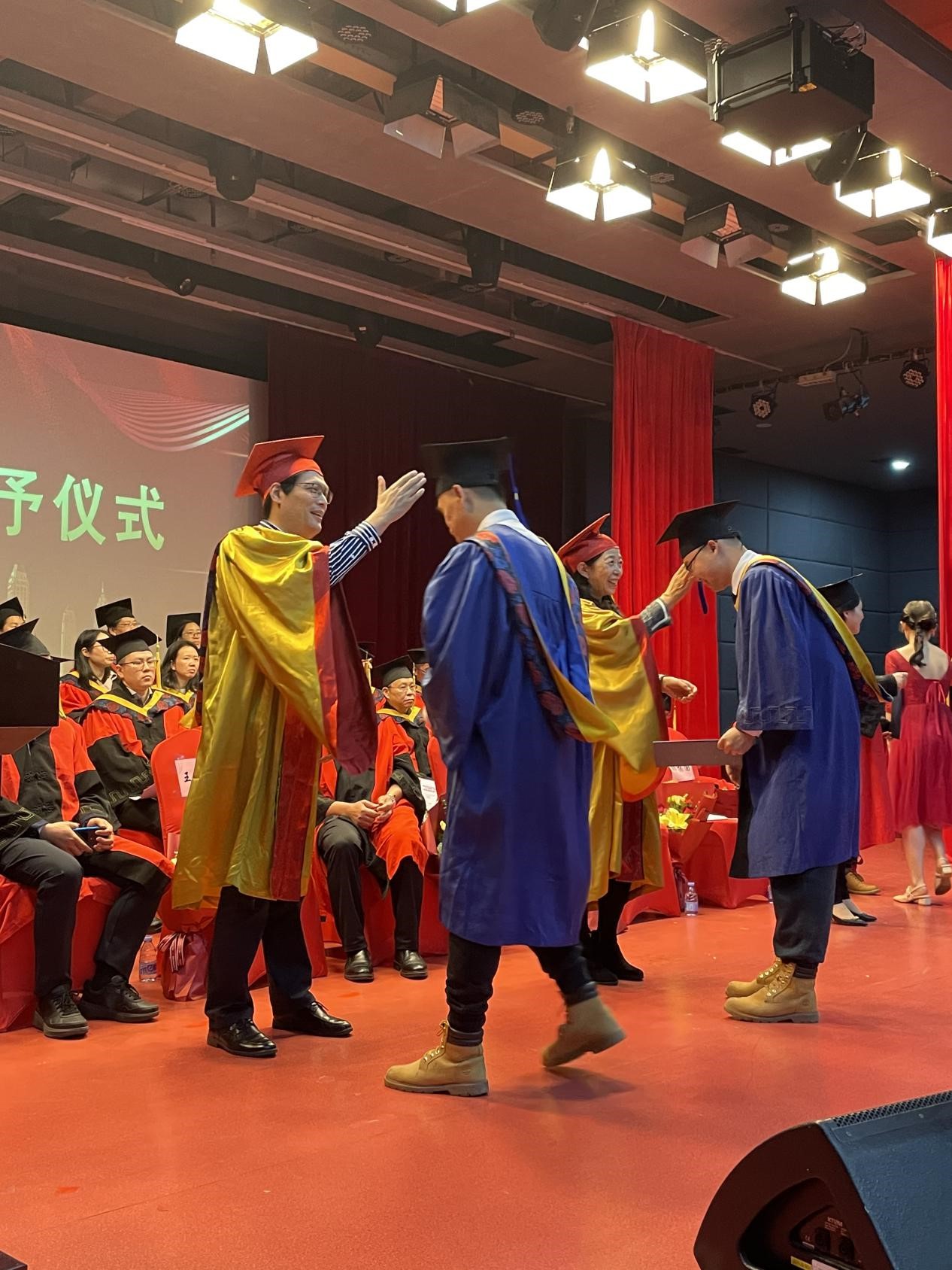 而后毕业生们依次上台,学院领导为毕业生们颁发学位证书,执拨穗礼。拨穗礼象征着毕业学子学有所成,希望同学们展翅高飞,往更高更远的地方大胆追求梦想。