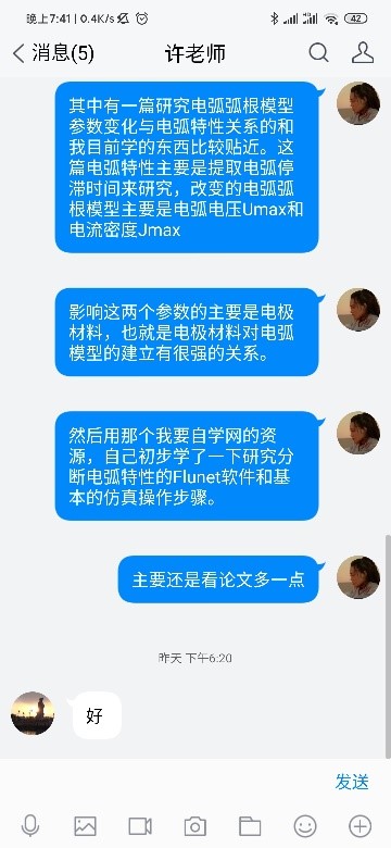 在抗“疫”期间,许老师考虑到各学生自身实际情况,先采用“单独汇报、单独指导”的方式。学生可通过QQ、微信、邮件、电话等随时汇报健康、学习或研究情况,给予学生较大的灵活性,逐步平衡各项事宜并调整生活状态,全面进入学习科研生活中。