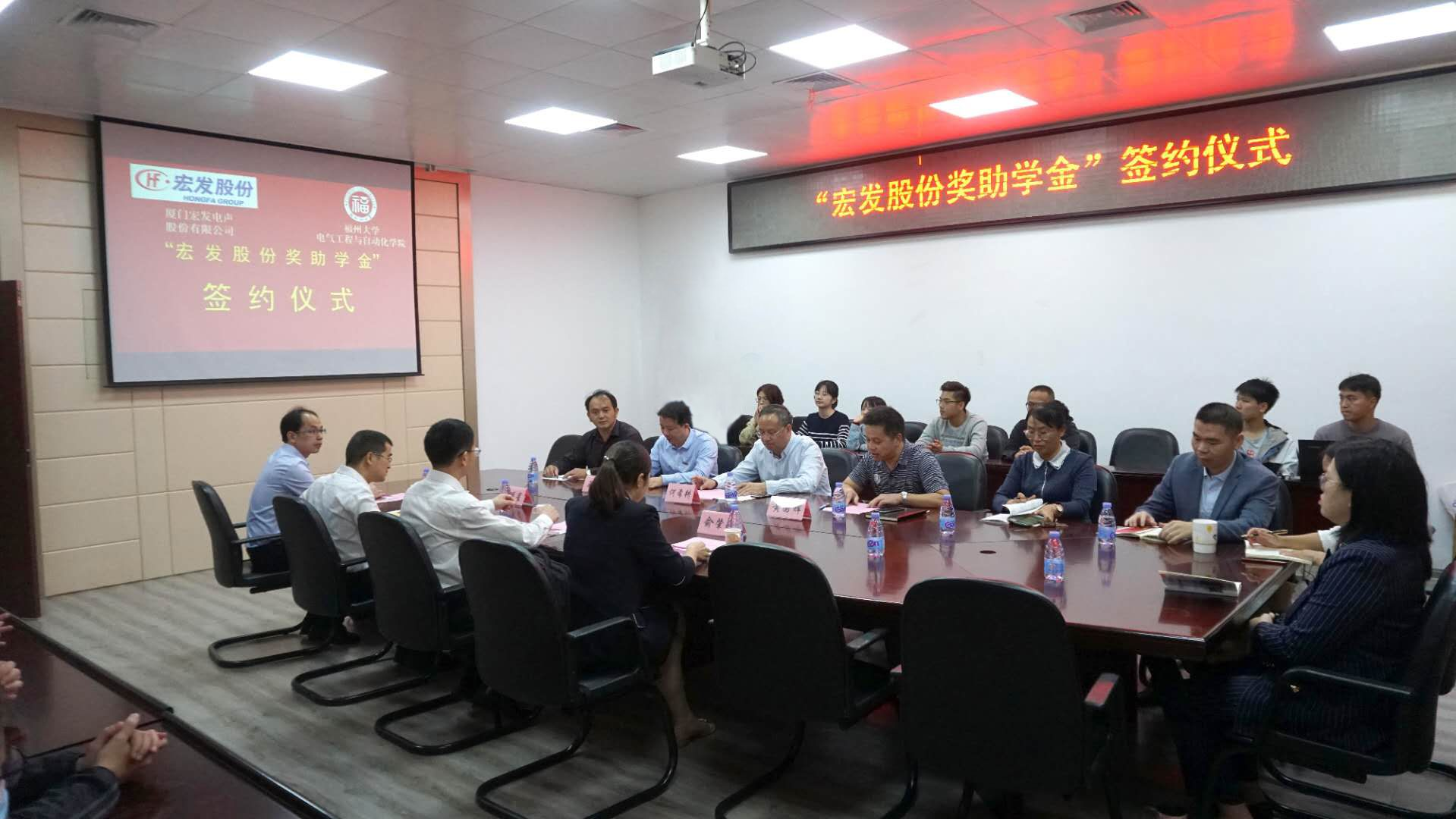 与厦门宏发电声股份有限公司在学院南212会议室成功举行了“宏发股份奖助学金”签约仪式。
