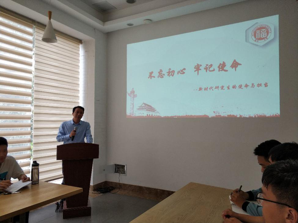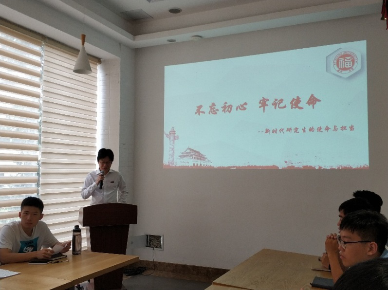 学术吧”的启用仪式。结合本次分享会的主题,王武老师首先向大家解释了“初心”和“使命”的深刻内涵,并根据新时代研究生的使命与担当这个主题,王武老师告诫我们,祖国的强大需要我们所有人的努力,每一位同学都应当有使命、有担当,并勉励在座的同学们,我们应该利用新环境给自己制定新目标,来迎合新时代的使命,并用使命和目标来鞭策自己。