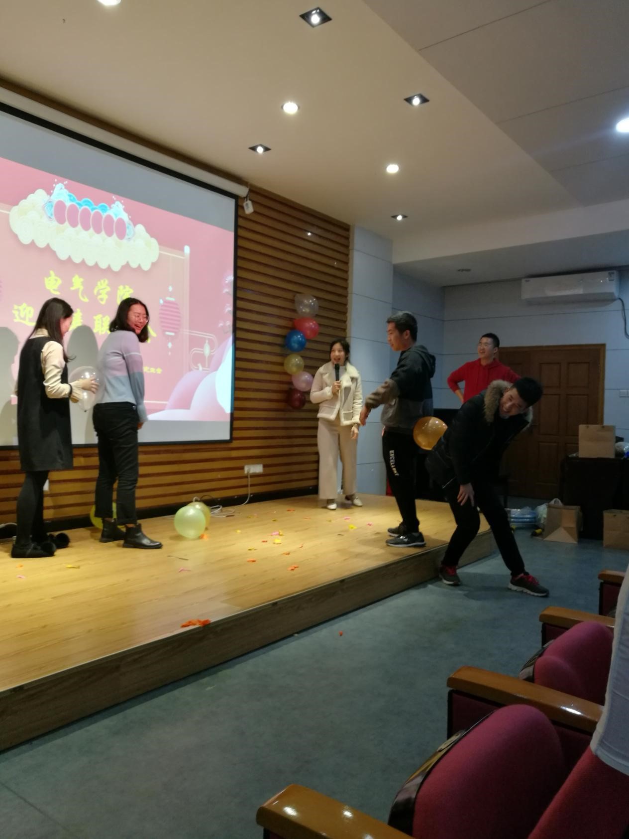 晚会主体由游戏环节、才艺表演环节以及抽奖环节三部分组成,各环节穿插进行,使得整个活动丰富多彩。“听歌识曲”、“心有灵犀”等游戏极大地调动了全场人员的热情。在才艺表演环节,何承烨同学的一段Beatbox彻底点燃了全场观众,娴熟的口技给人印象深刻,一改我们电气学子只会搞科研的理工男形象。“穿越呼啦圈”游戏,一些同学滑稽的动作令观众捧腹大笑。接下来是“十佳歌手”孙毓璞的showtime时间,一首张学友的《慢慢》将电气学子的音乐细胞展现的淋漓尽致。“爆气球”是一个激情似火的游戏,非常考验团队协作能力,也将晚会氛围带向高潮。最后工作人员将小奖品铺满地板,请大家上台扔圈套奖品,套中即可带走,看其简单,实则还真是个技术活。