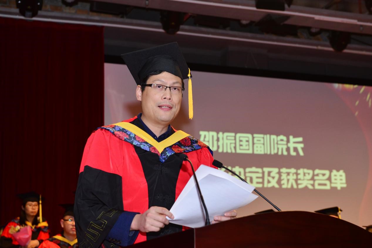 接着由毕业研究生代表刘伟上台发言,他诚挚地表达了对母校两年半培育之恩的感激,并立志走上工作岗位后要回馈社会,为母校争光!教师代表周扬忠教授教导我们在以后的工作生活中要以一个科研工作者的素养和态度去面对和解决遇见的问题,要敢于迎难而上,开拓创新。随后毕业生们依次走上主席台,学院领导为毕业生依次颁发学位证书,执拨穗礼,并与其一一合影留念。最后由院长许志红教授致闭幕词,许院长以“好好生活,努力工作”为主题,对毕业生提出了四点期望:不忘初心,脚踏实地;调整自己,适应社会;抓住机遇,大胆尝试;积极向上,乐观开朗。并借用习总书记在四川的讲话,教导我们从熟悉的校园走入陌生的社会后一定要不断磨练自己,需知做人不一定要风风光光,但一定要堂堂正正。