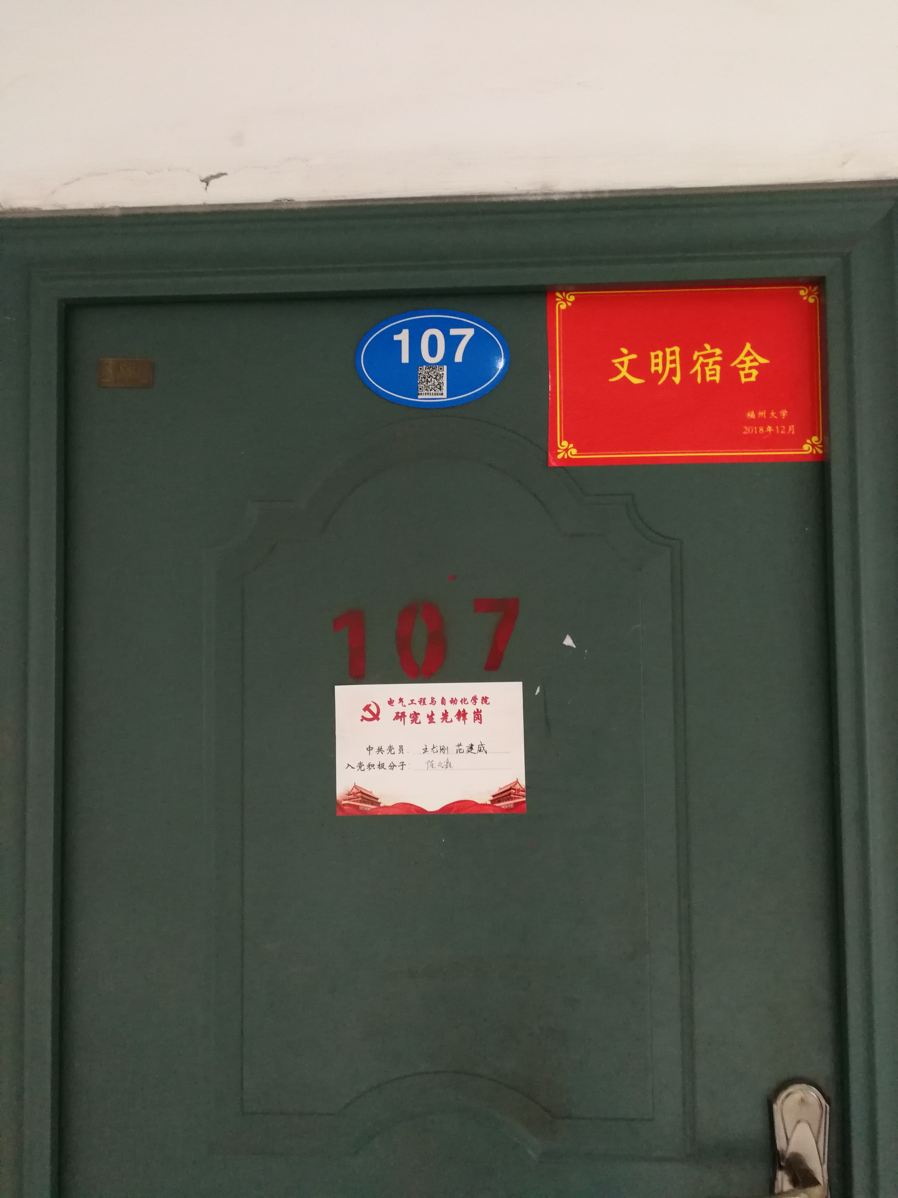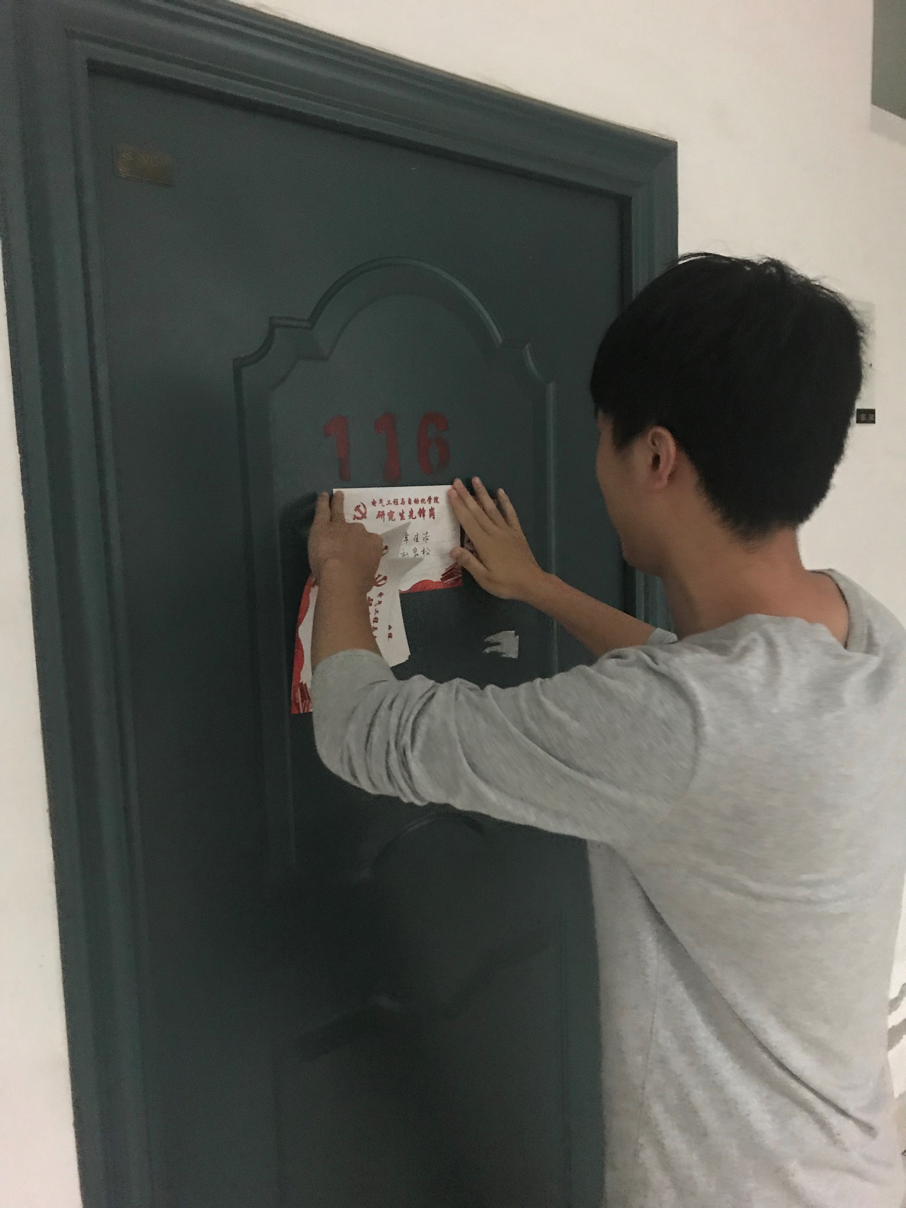 图1 党员在宿舍门前粘贴“研究生先锋岗”名片