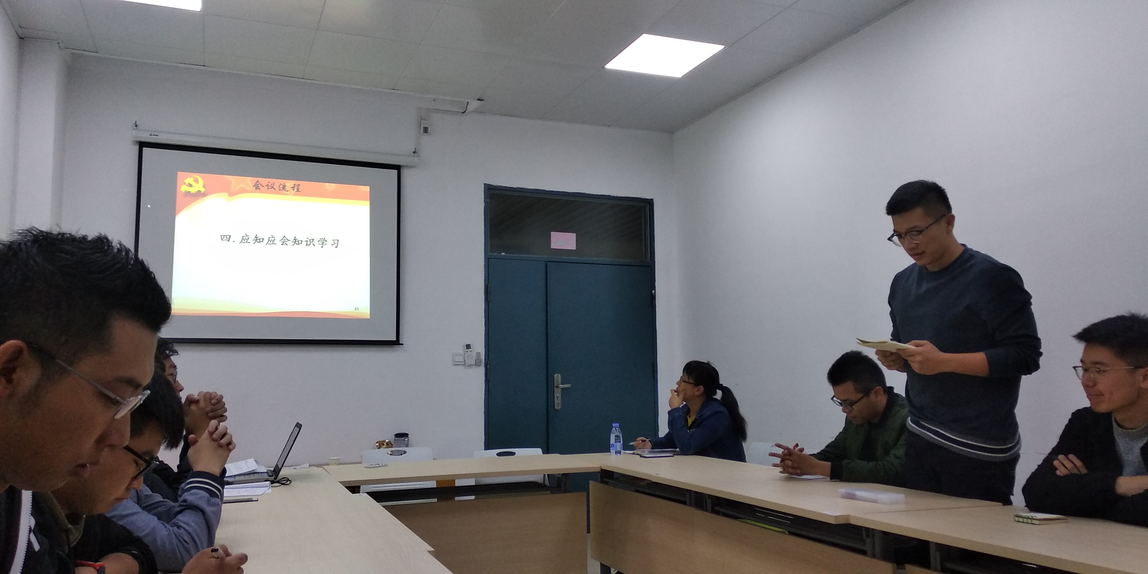 会议开始,支部书记陈越灵同志首先介绍了支部的基本情况以及新生党员相关情况。会议第二项议程是党员述诺,由几位党员同志代表发言,进一步明确党员自身的责任与义务。在应知应会知识学习环节,各位党员同志积极交流,有效促进党内相关知识学习。接下来由上届书记黄李威同志为各位党员做了主题为“学习”的微党课,黄李威同志通过结合自身学习经历,指出每个党员同志都应该做到终身学习,不断提高自身综合素质,才能为社会主义建设贡献出自己的一份力量。最后在经验交流环节,由王阳同志和韩志平同志为新生党员进行学习和工作生活方面的经验分享。