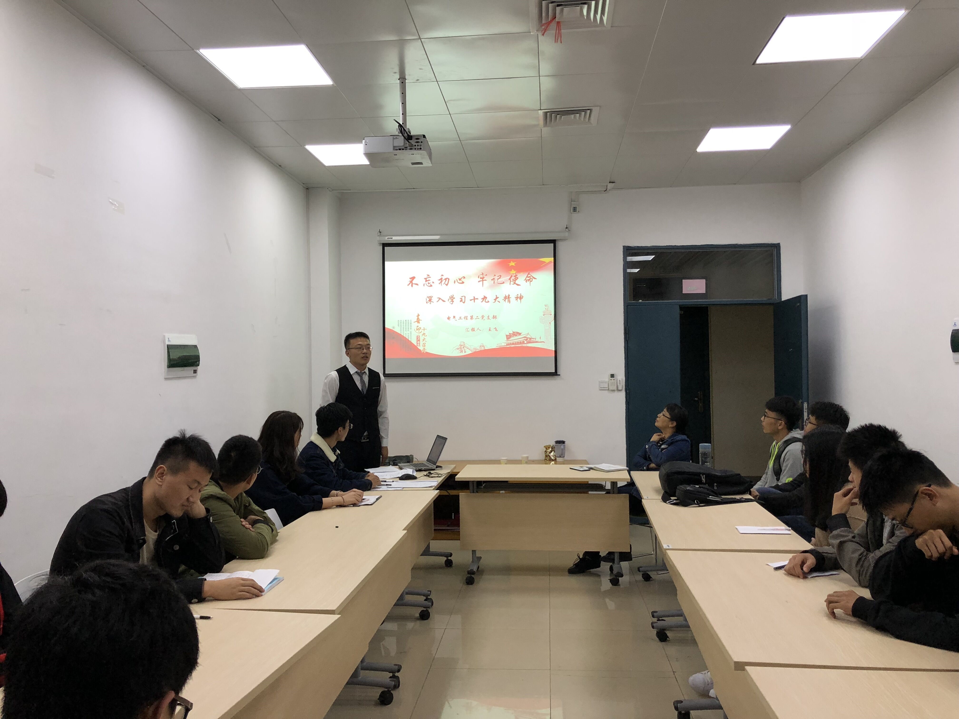 电气工程第二研究生党支部于2018年11月4日晚上7时30分在新楚楼北211召开支部纳新大会暨党的“应知应会”专题学习。此次会议由支部书记万志松同志主持,研究生辅导员许海燕老师莅临出席会议。本次会议的主要内容有:电气工程第二研究生党支部纳新、党的“应知应会”专题学习、研三学长学姐经验交流、乔峰同志自我批评、支部工作规程。