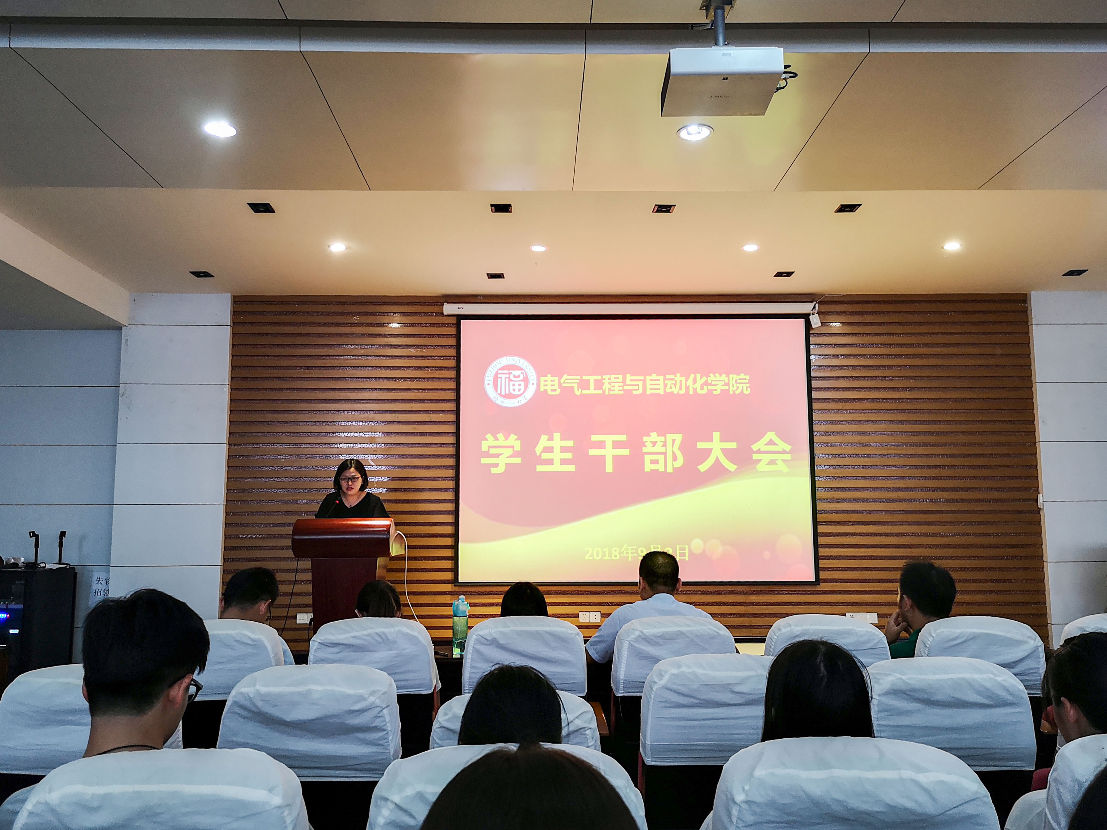 在院多功能厅隆重举办了新学期的学生干部大会。出席会议的有院党委副书记黄国辉老师、院团委书记沈庆斌老师、2018级辅导员尹万东老师、2017级辅导员梁艳华老师、2015级兼职辅导员徐心靖、2016级兼职辅导员李晓倩、2017级兼职辅导员谢仁栩以及学院主要学生干部。本次大会由院团委副书记陈荟芳老师主持。