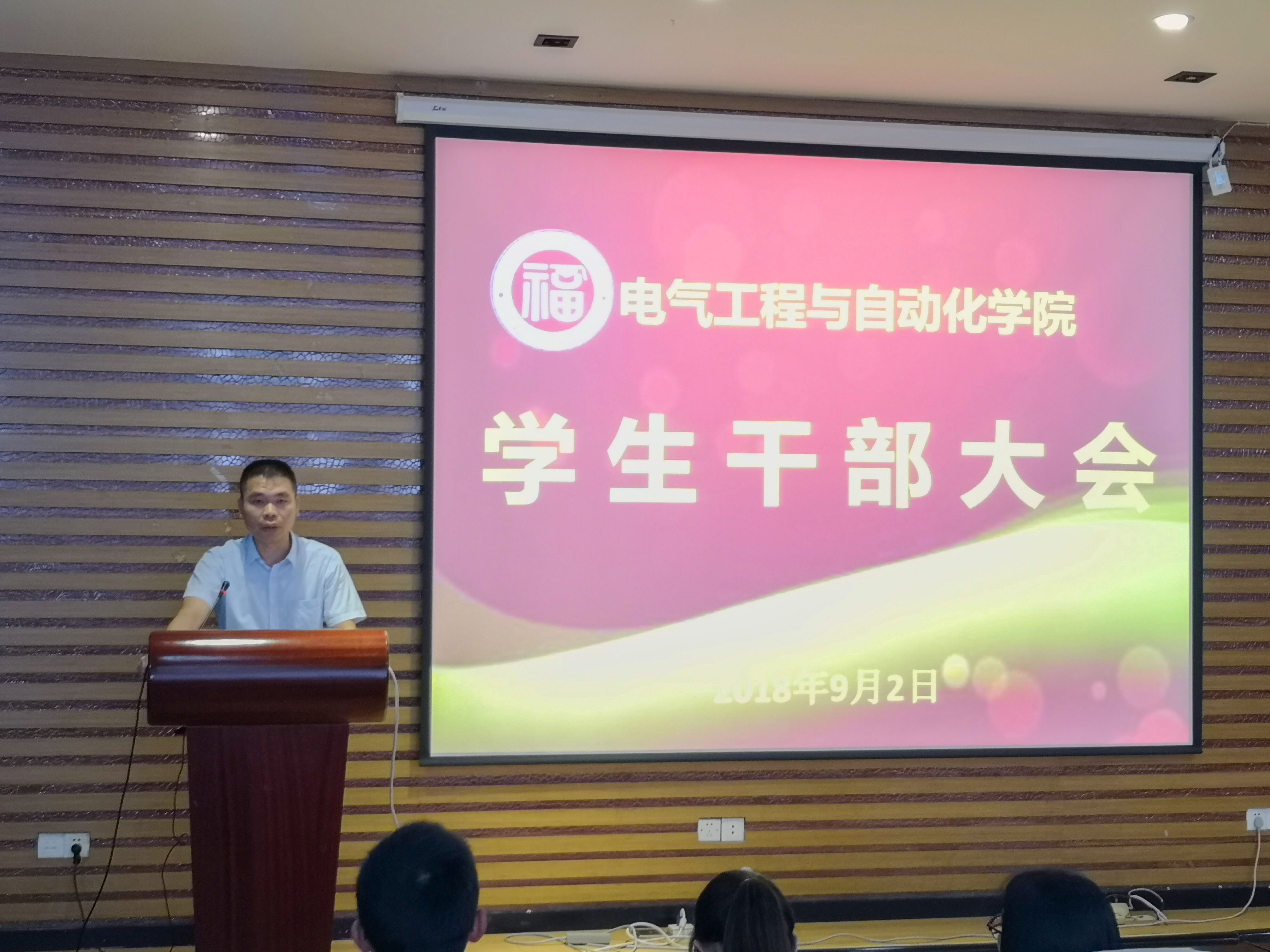 学生在各方面都取得了极好的成绩,尤其在科技创新方面,在各类大赛中名列前茅。沈书记提到10月份学校将迎来六十周年校庆,希望大家能够踊跃参与各项活动。接着沈书记对学院2018年团学工作进行了总结计划,包括学院迎新、院运会、校运会以及干部换届等要点,并对本学期工作寄予厚望。