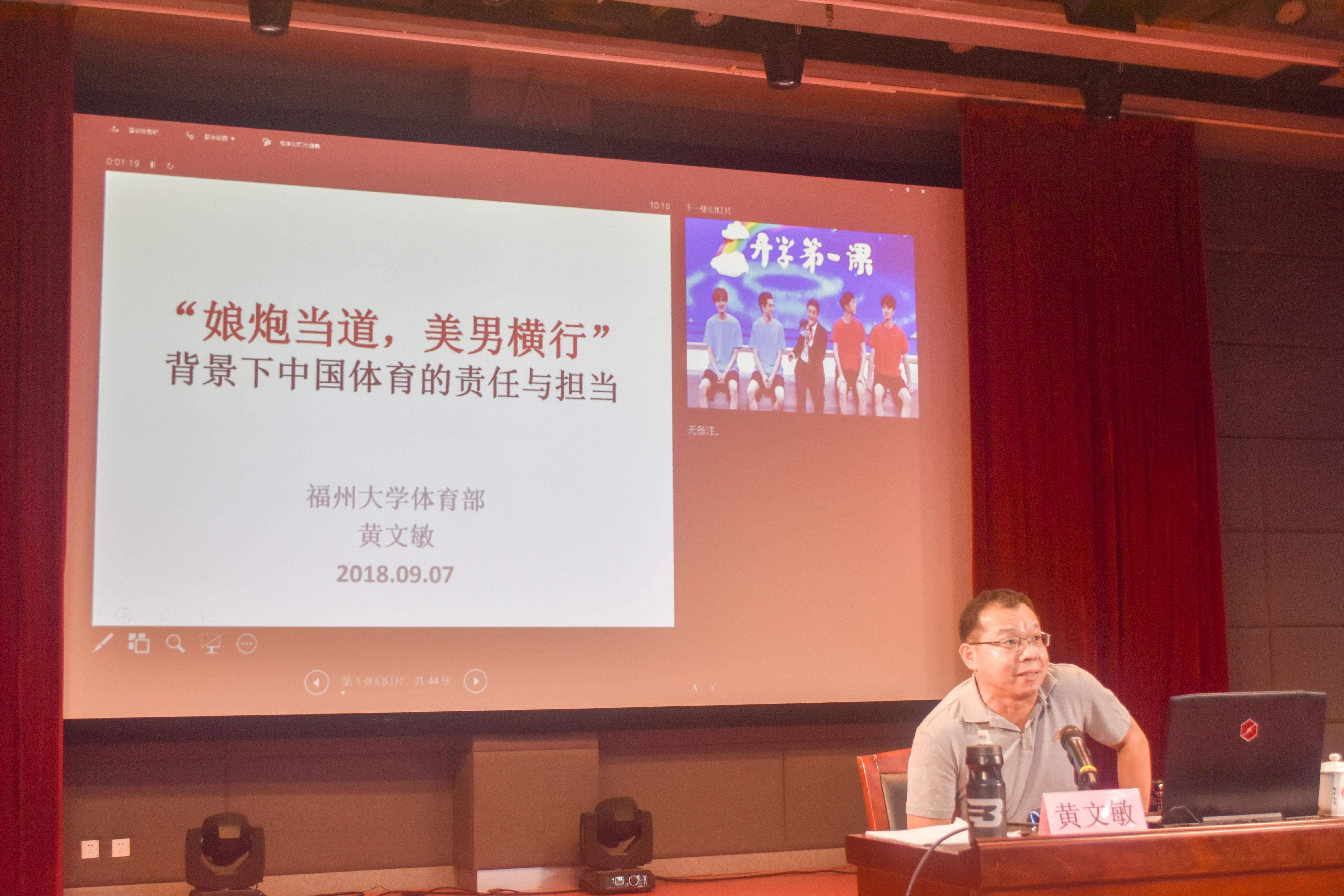 体育部黄文敏老师,为2018级电气学子带来“开学第一课:‘娘炮当道,鲜肉横行’背景下中国体育的责任和担当”主题讲座。讲座于成人影视片