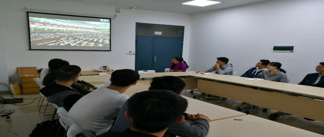 研究生辅导员许海燕老师主持组织学院研会学生干部代表,党支部支委成员在新楚楼北211活动室集体观看学习。