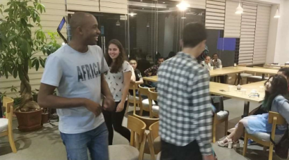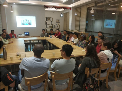 留学生交流会分三个环节进行,第一个环节,由留学生分享他们自己国家的趣味文化,介绍中外两国的文化差别;在这个环节上,首先由参会的每个同学用英文作了简短的自我介绍,然后外籍留学生开始分享本国文化和趣事,其中来自埃塞俄比亚的Addis表现的非常踊跃和积极,他专门制作了一段精美的ppt在交流会上做了精彩的演讲,生动的图片和流利的英语给我们带来了全新的交流体验。第二个环节,肖宇迪同学专门准备了内容详实的ppt为大家分享了他在丹麦技术大学的学习和生活体验,他用流利的英语介绍了在丹麦的科研情况和相关的留学申请事宜,让大家受益匪浅。第三个环节,选出了三个外籍留学生和三个中国学生一起做抢凳子的游戏,来自非洲的Safiya成了最后的赢家,她的勇敢和执着使她最终得以战胜其他对手获得了最后的胜利。