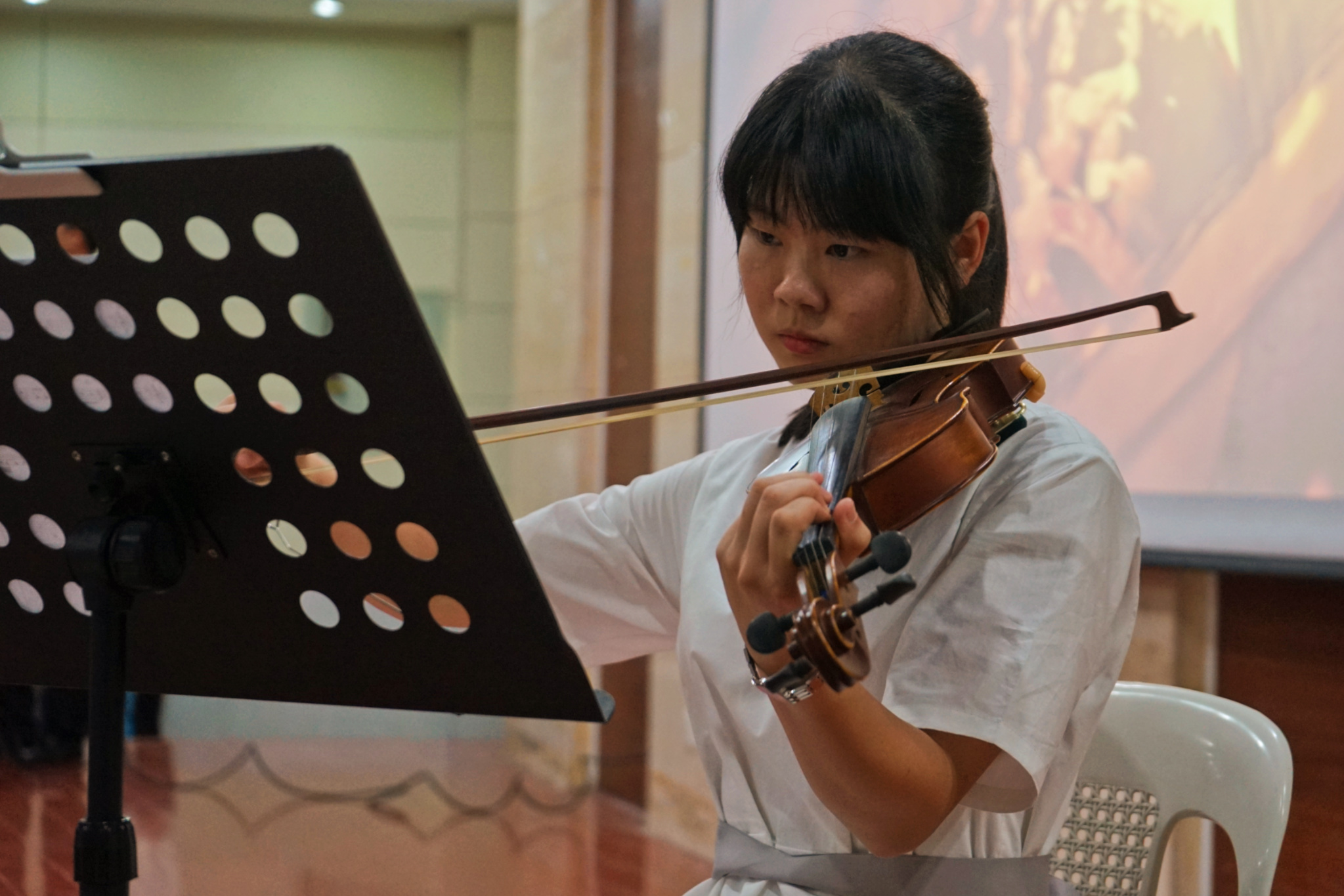 第三环节是才艺表演环节——砥砺进取,铸就辉煌。其中“相约2035队”用一段小提琴表演及“中国好大学产品发布会”的新颖形式向观众介绍了成人影视片