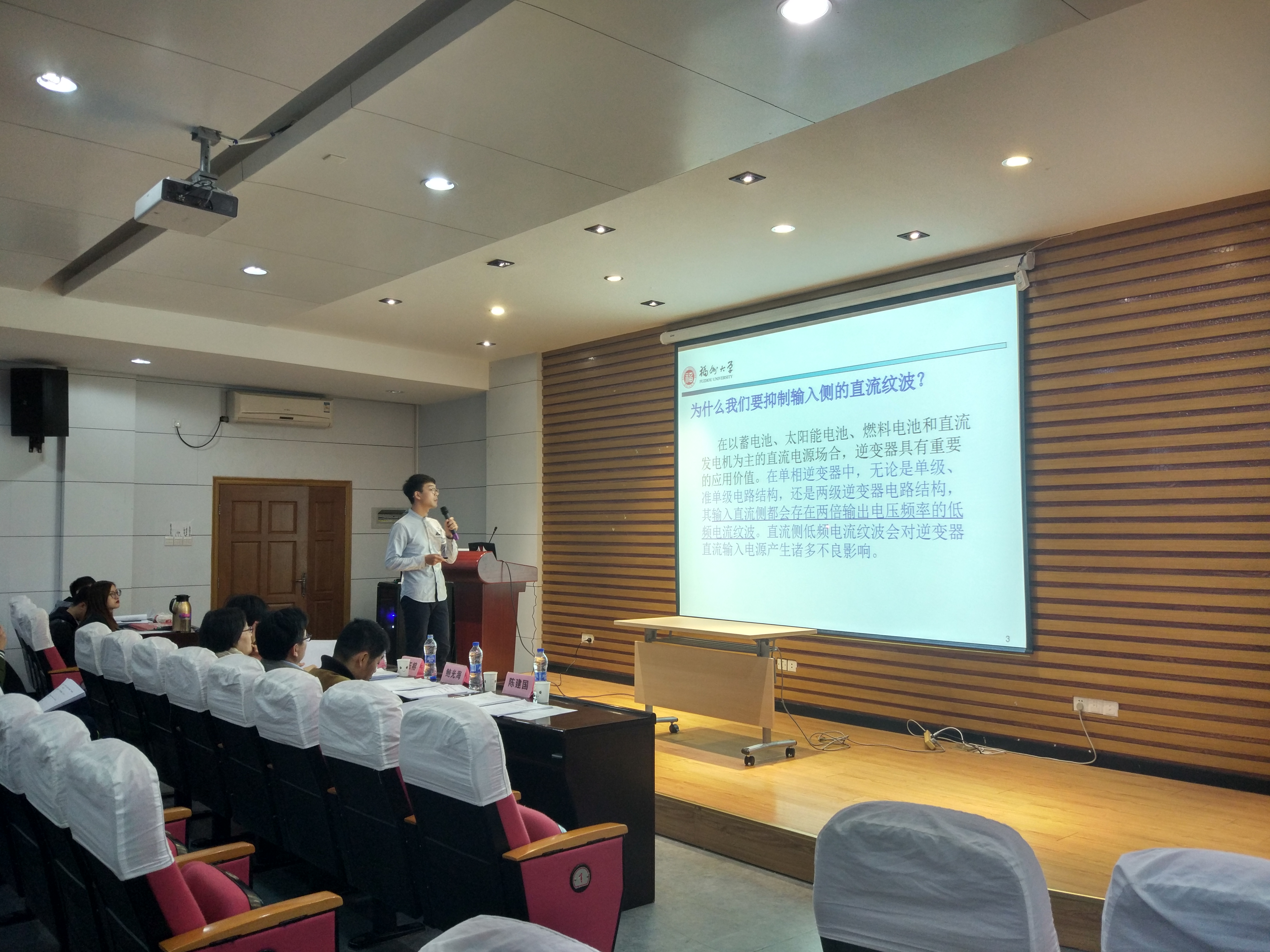 经过一个星期的初赛筛选,最终共7只队伍进入了今天的决赛。赛前每只队伍都做了充分的准备,决赛当天首先通过ppt演示和讲解,向评委老师与在场观众展示了各自实物作品的研究意义、创新点以及实用性等,然后通过视频的形式生动形象地讲解了自己所参赛的作品。在答辩环节,各队伍同学根据评委老师的提问,就自己的作品向同学和老师细致的讲解了问题的所在点和突破点。本次比赛中突出表现的郑梦飞同学队伍,他们设计的六相单绕组无轴承磁通切换电机结构,避免了某些转子位置处三对绕组产生的悬浮力均过小的现象,从而避免了这些转子位置处负电荷过大的缺陷,具有很好的实用价值。最后鲍光海老师总结说道:“参加比赛的队伍,都是学院科研能手,这次的表现都很好,希望同学们更加努力上进,争取更好的成果”。