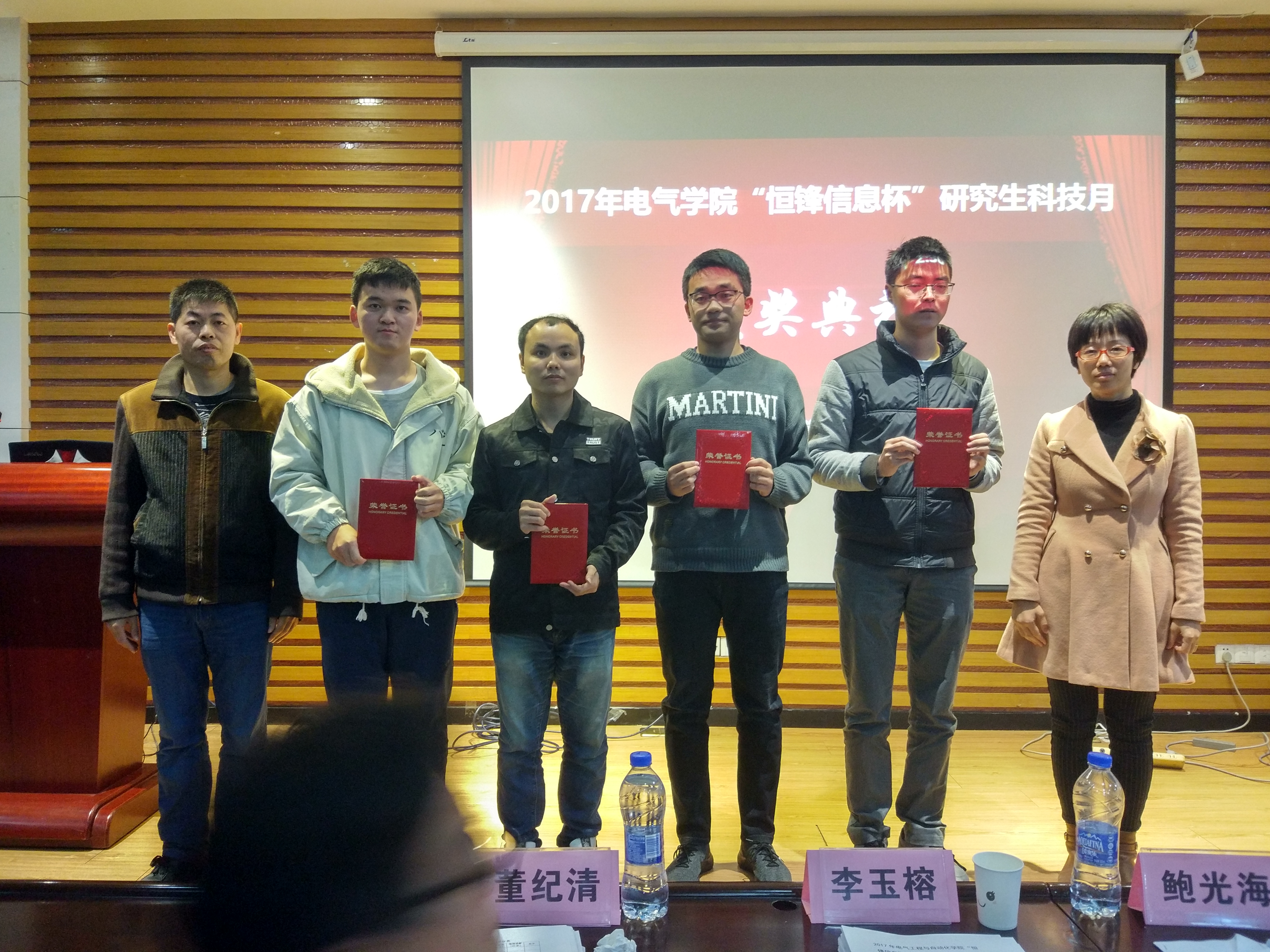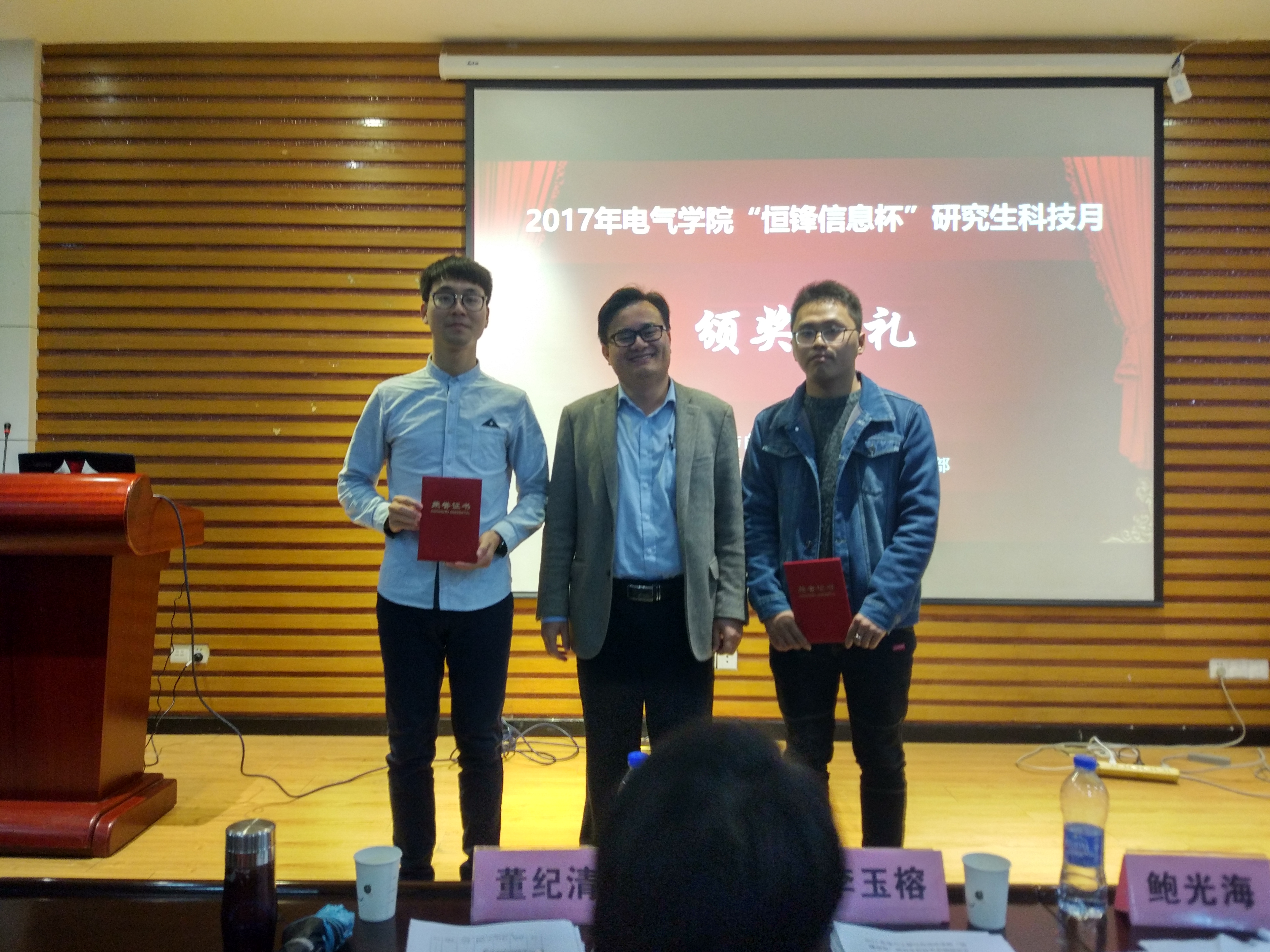 获一等奖的队伍一支,题目为:“无轴承永磁磁通切换电机设计、优化及其驱动控制”,团队成员:郑梦飞、王凌波、俞海良。