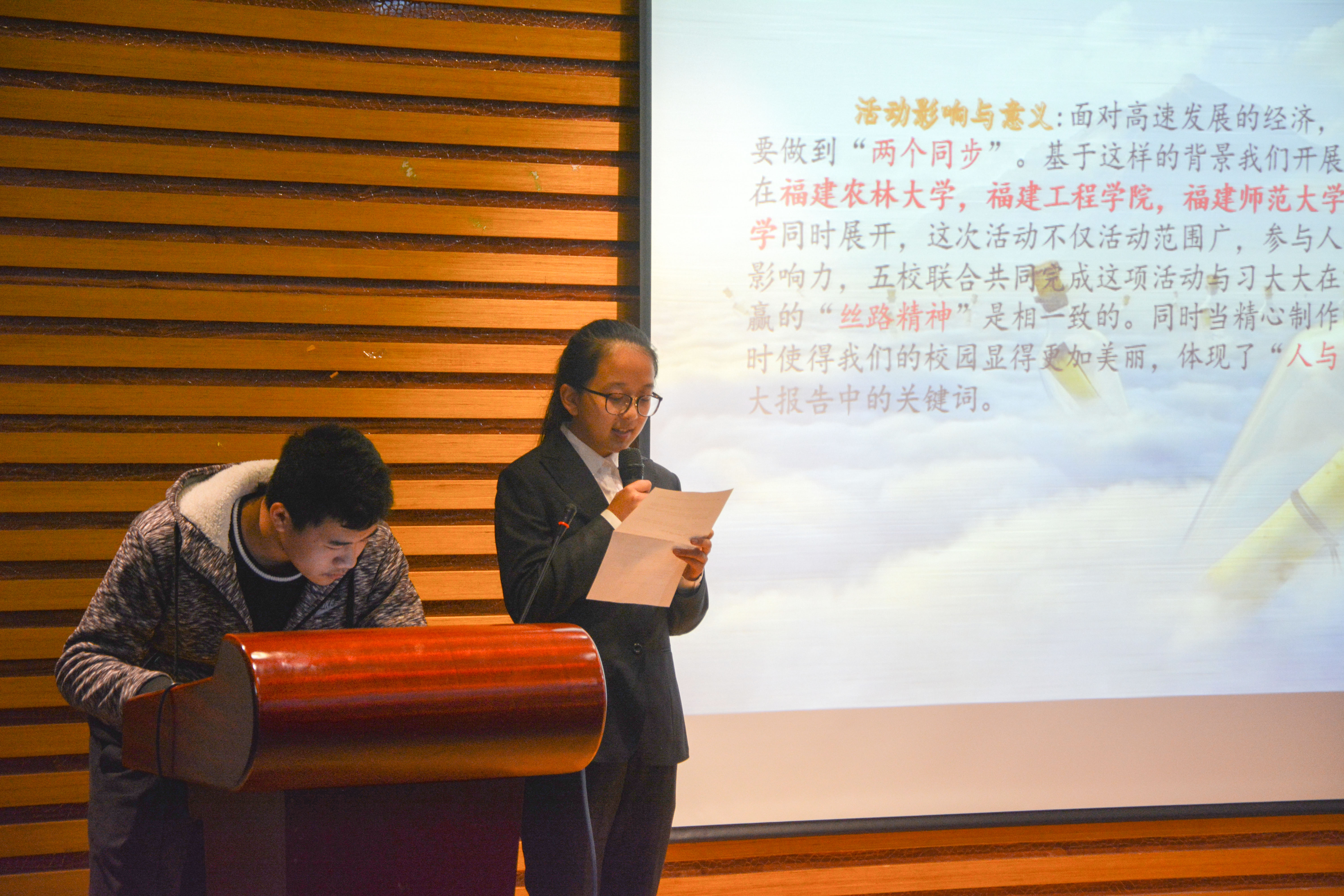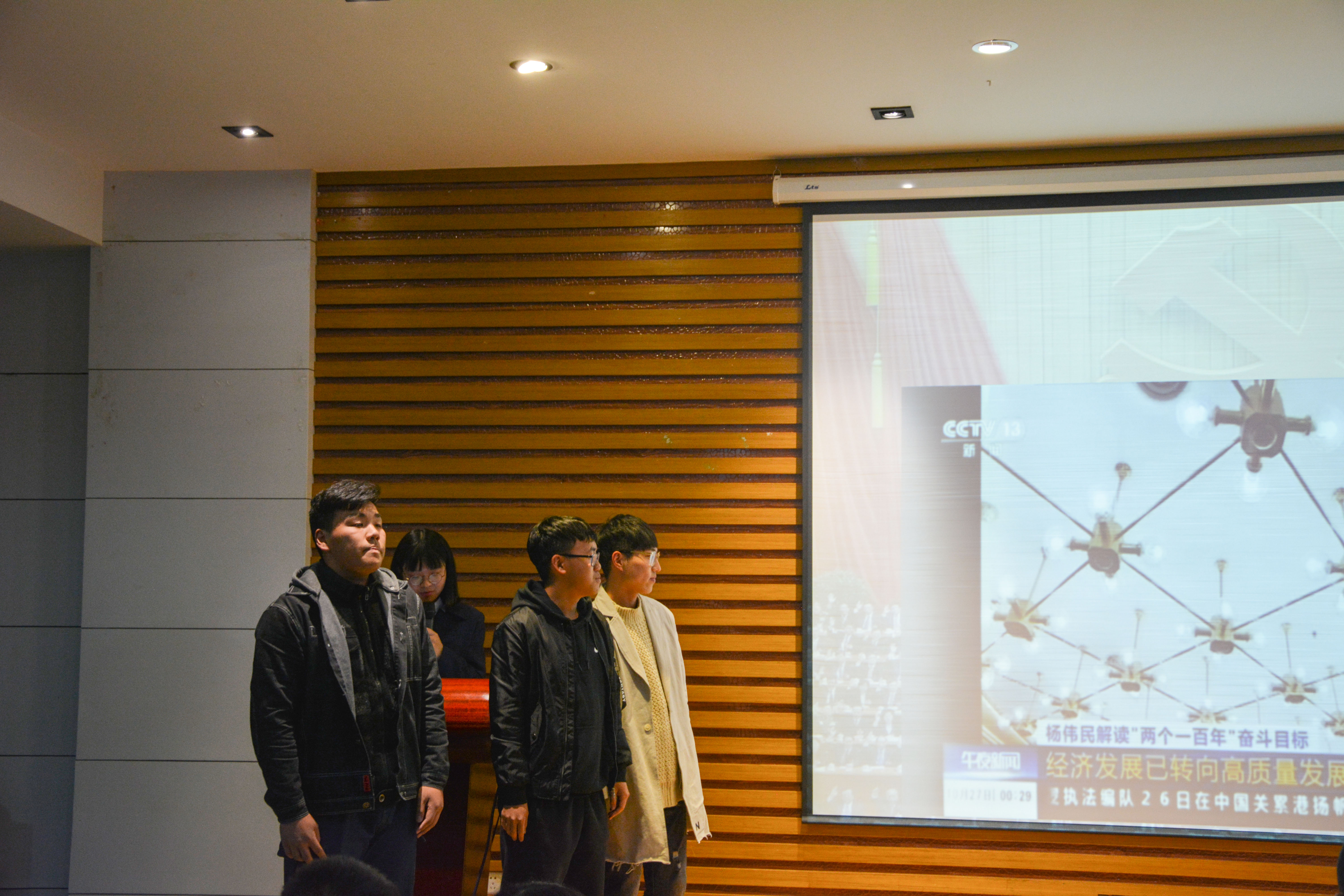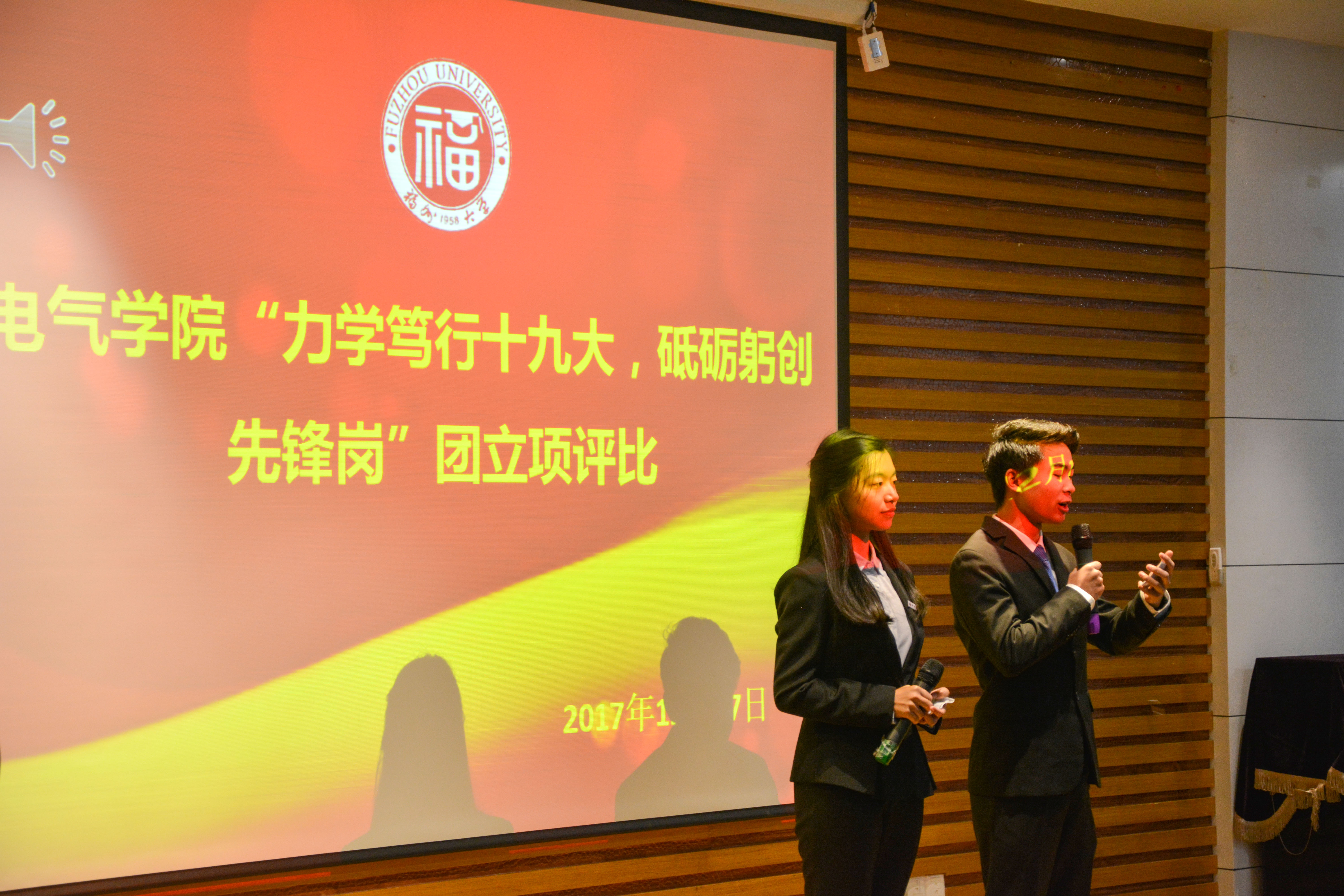 本次团立项活动评比由各年段选出优秀团支部,上台展示。舞台上,有的支部用新闻联播形式,有的支部以列车到站形式,而有的支部则通过表演话剧或改编歌曲,用自己独特的方式向观众展现了他们的团立项活动,宣扬了十九大内涵,学习了先锋岗精神。现场观众爆满,气氛热烈,掌声不断。