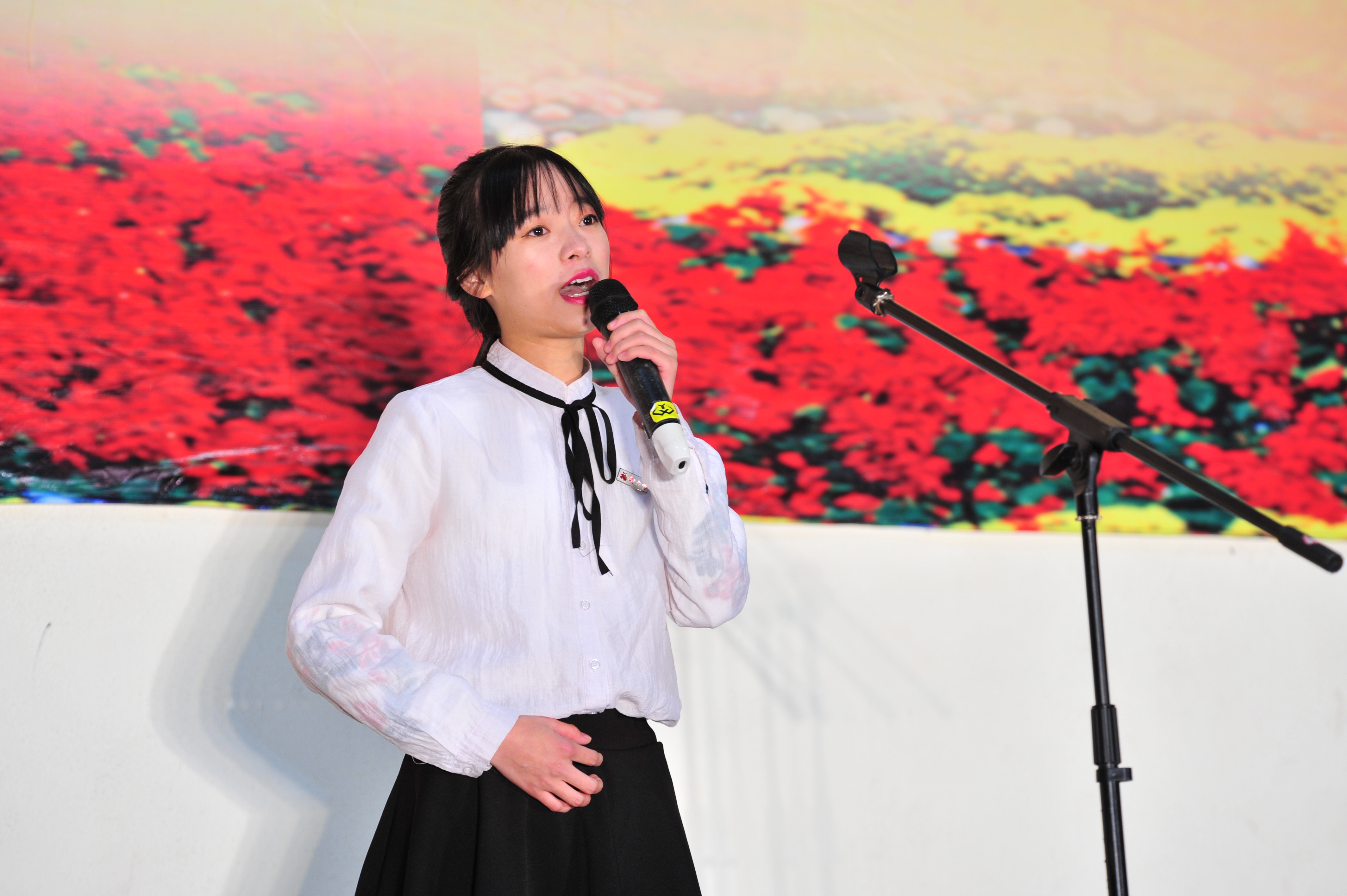她从那块红色质朴的土地讲起,用她美丽的语言带领着大家,走进那座小城中的纪念馆,走过纪念馆冰冷的陈列室,“触摸”玻璃中红色的遗产,驻足于高悬在寂静中的军旗,聆听耄耋军人百味杂陈的泪水掉落的声音,感受一名充满着理想的少女,发自内心的呼唤……