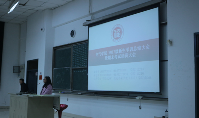 为刚刚结束的军训和即将到来的期末考试召开年级大会。梁艳华辅导员在会上发表了激动人心的讲话,总结了军训期间的收获与反思。林建业辅导员则情真意切地关心同学们的期末备考,鼓励电气学子们再接再厉,继续攀登。大会还为在高数期中考试中取得优异成绩的十三位同学颁发奖状,表彰他们优秀地传承了刻苦学习的电气精神。