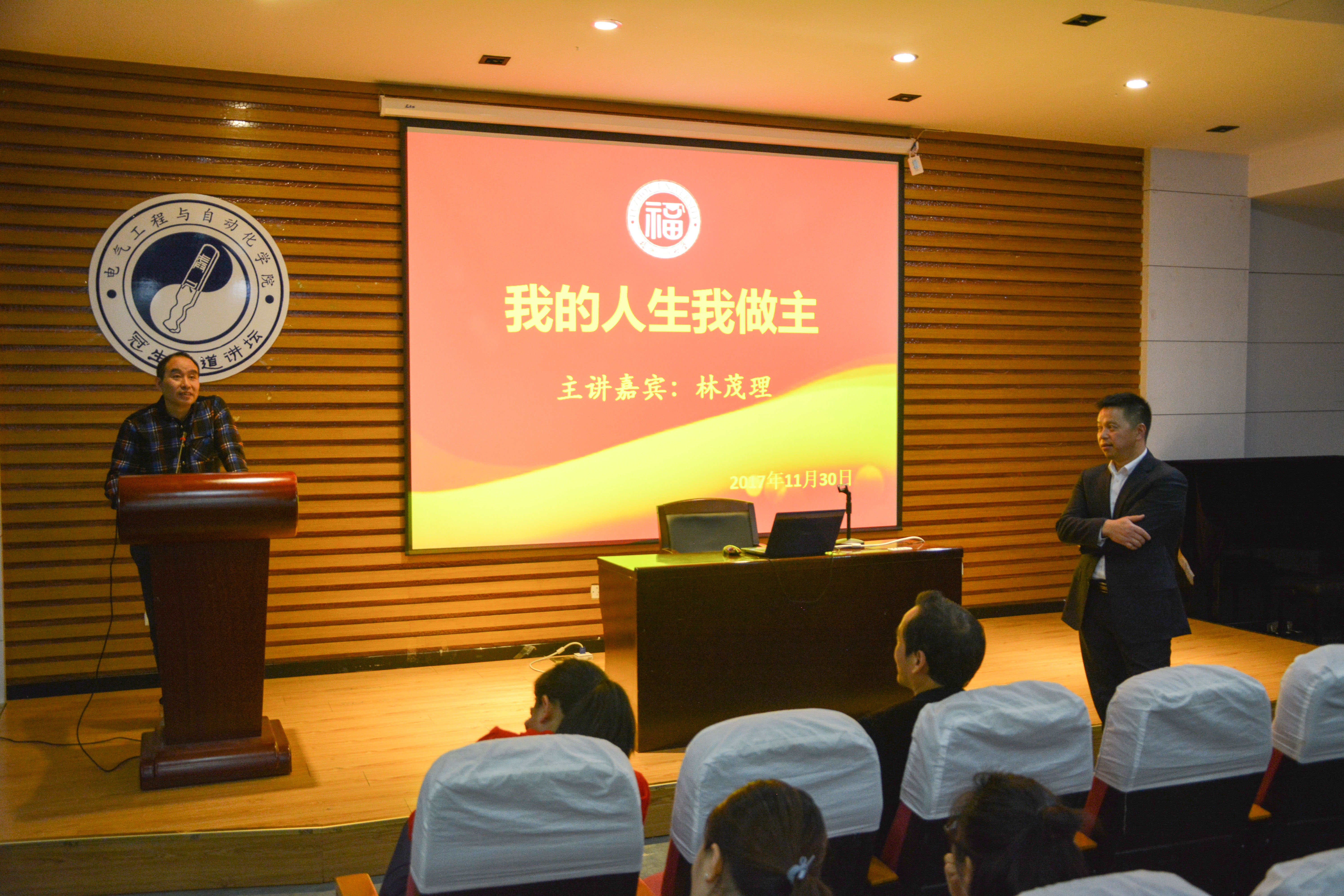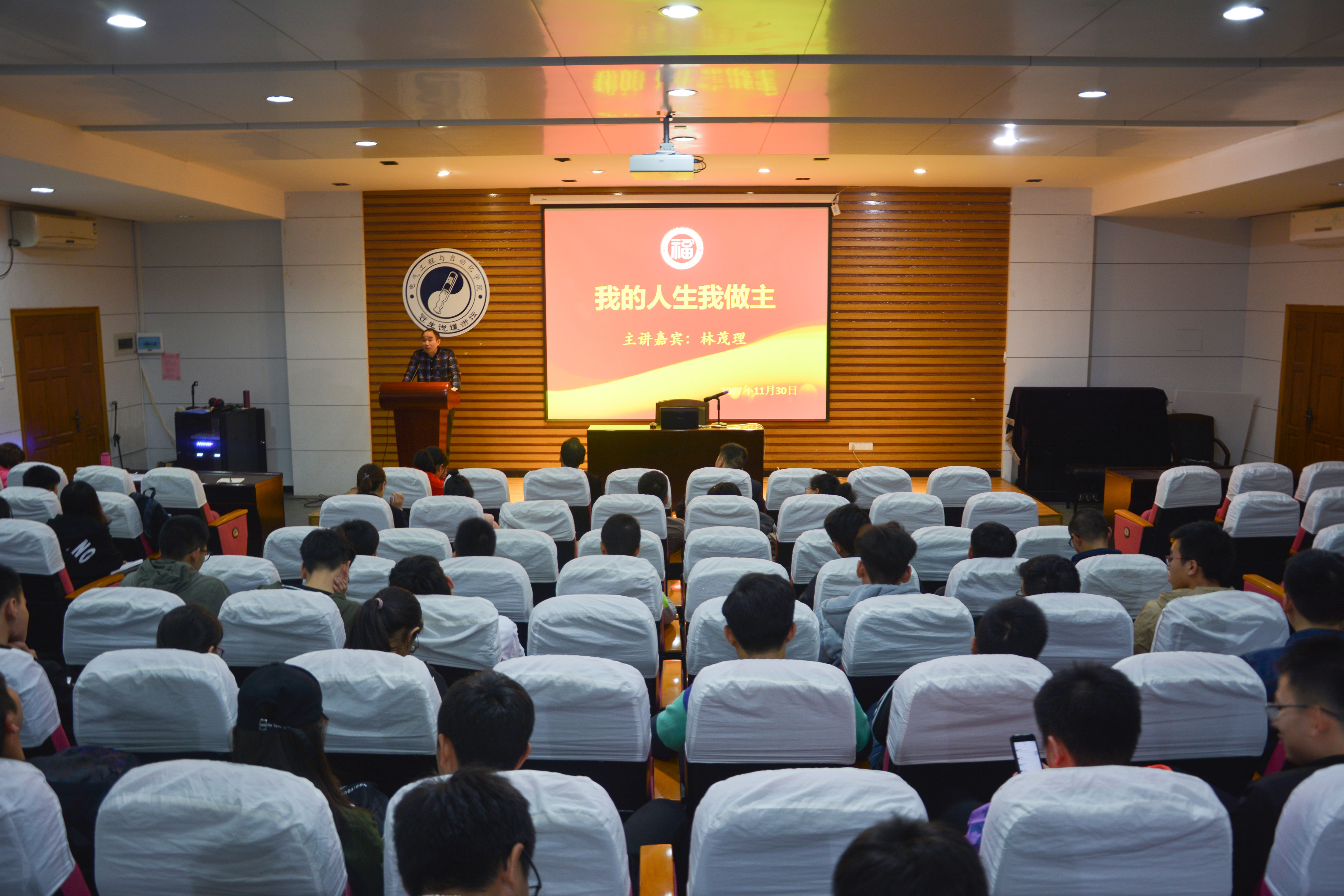本次讲座的题目为:我的人生我做主,主讲嘉宾为林茂理主任。林主任在讲座中说道:你们是非常幸福的一代,然而在人生成长的过程中,会遇到很多迷惘与困惑。所谓成长,其实是一种残酷的自我对抗,在每一个挑战和困难面前,站稳挺住,从中获得经验和智慧。林主任谈及自己在求学和工作中遇到的艰难险阻,并详细阐述了如何克服这些困难,这些经验对我们大有裨益。