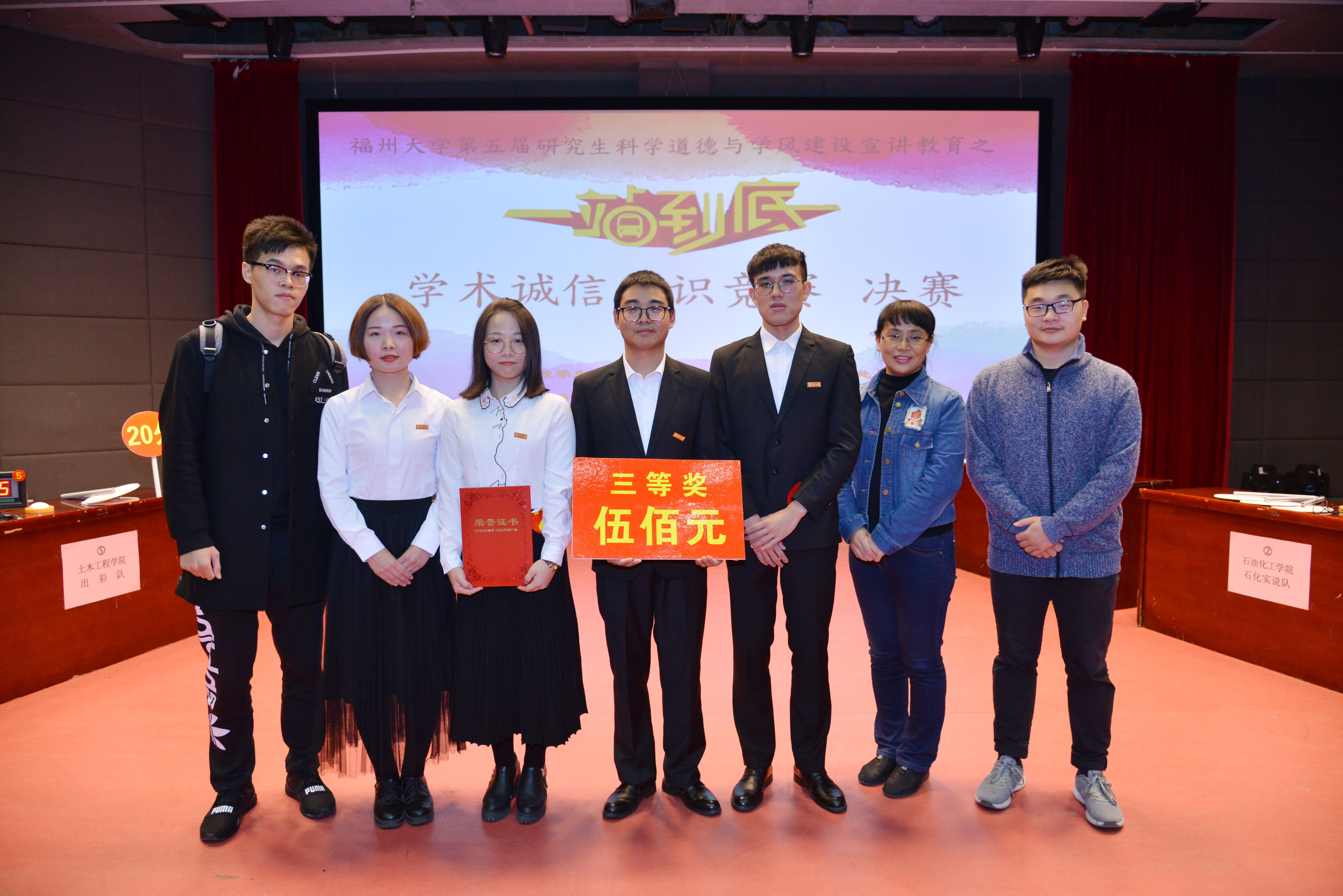 竞赛结束后,进行了颁奖仪式,为本次“一站到底”学术诚信知识竞赛画上了圆满的句号。成绩只是我们这次活动的一部分,更加重要的是我们参加比赛的其他收获。非常感谢学校给我们搭建的这个平台,在学习回顾知识产权与学术诚信相关知识的同时,更加懂得作为一名研究生应当如何处理学术诚信相关问题,深化了我们遵守学术道德的使命感,为我们献身科研注入了强劲的动力!
