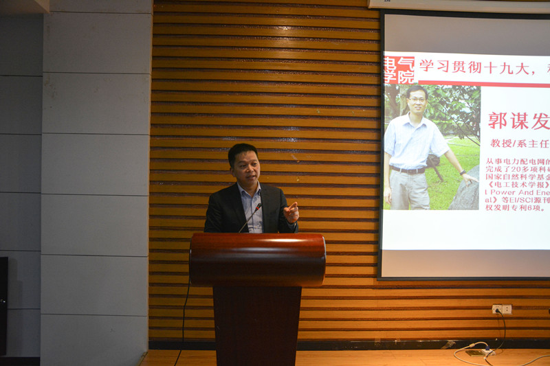 会上黄国辉书记提到,邀请郭教授指导15级电气一班的科研,是践行十九大精神,是学院对鼓励本科生参与科研的一种创新。黄书记对电气一班寄予厚望,希望电气一班同学能够积极参与科研。