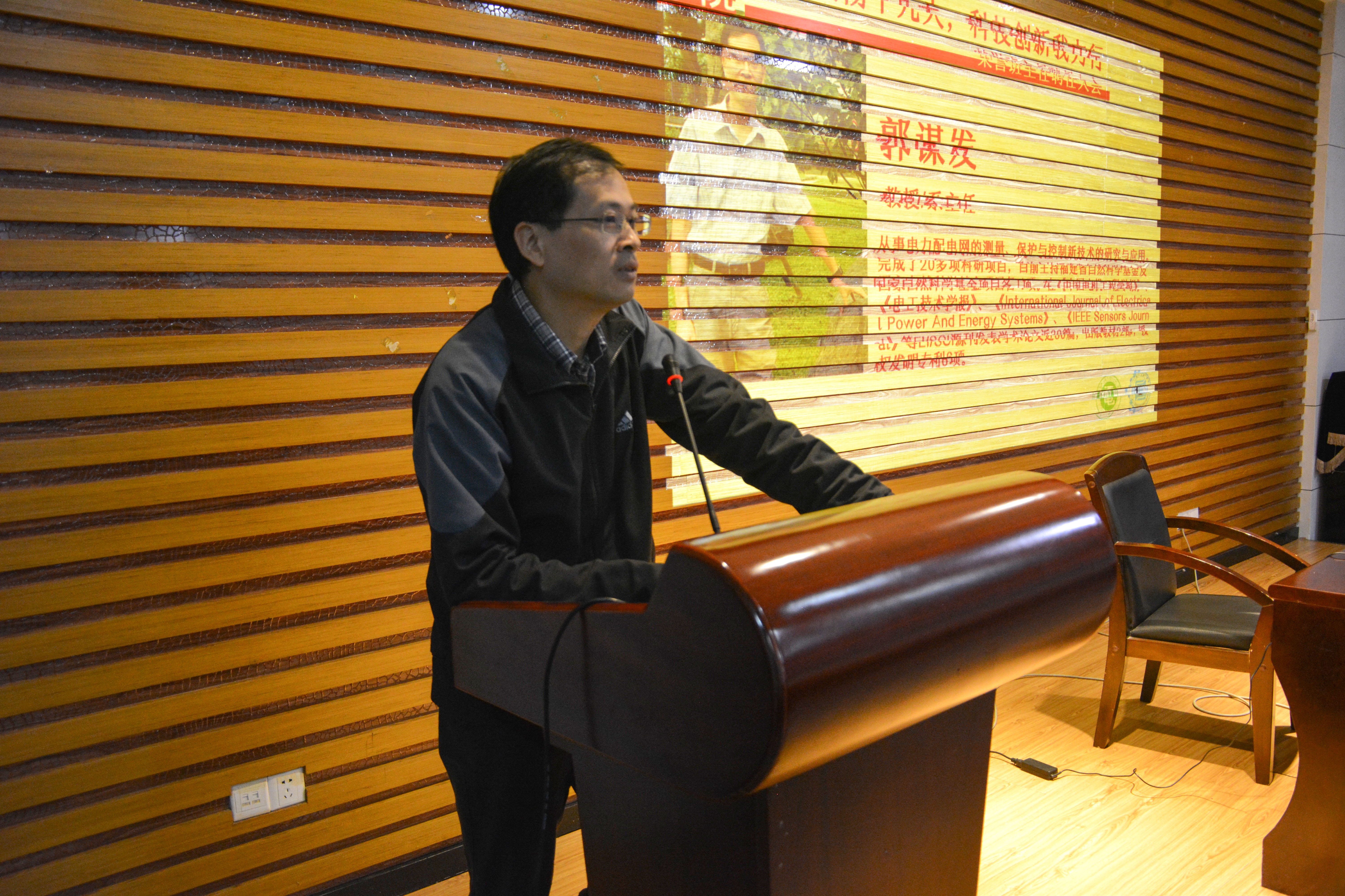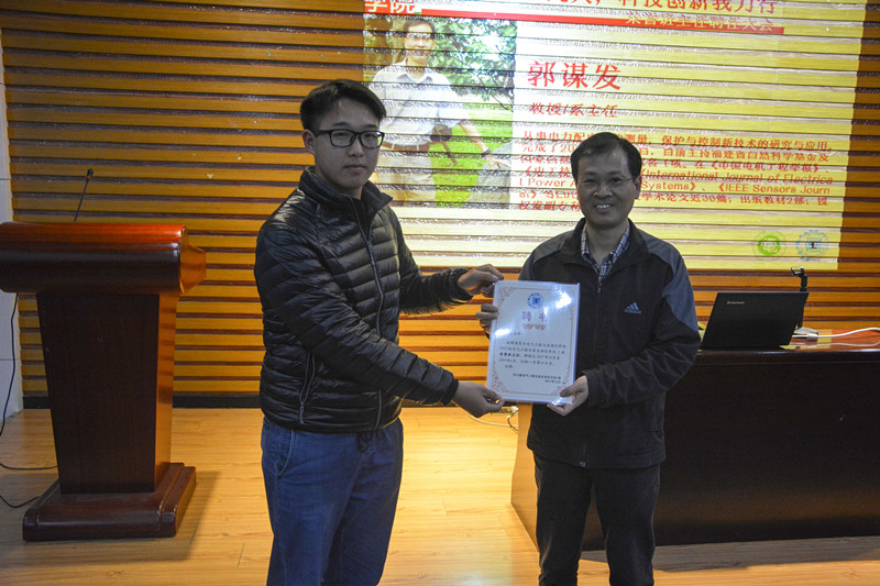 会上郭谋发教授介绍了在他带领的项目中目前阶段适合本科生参与的科研工作,并鼓励电气一班同学积极参与科研。