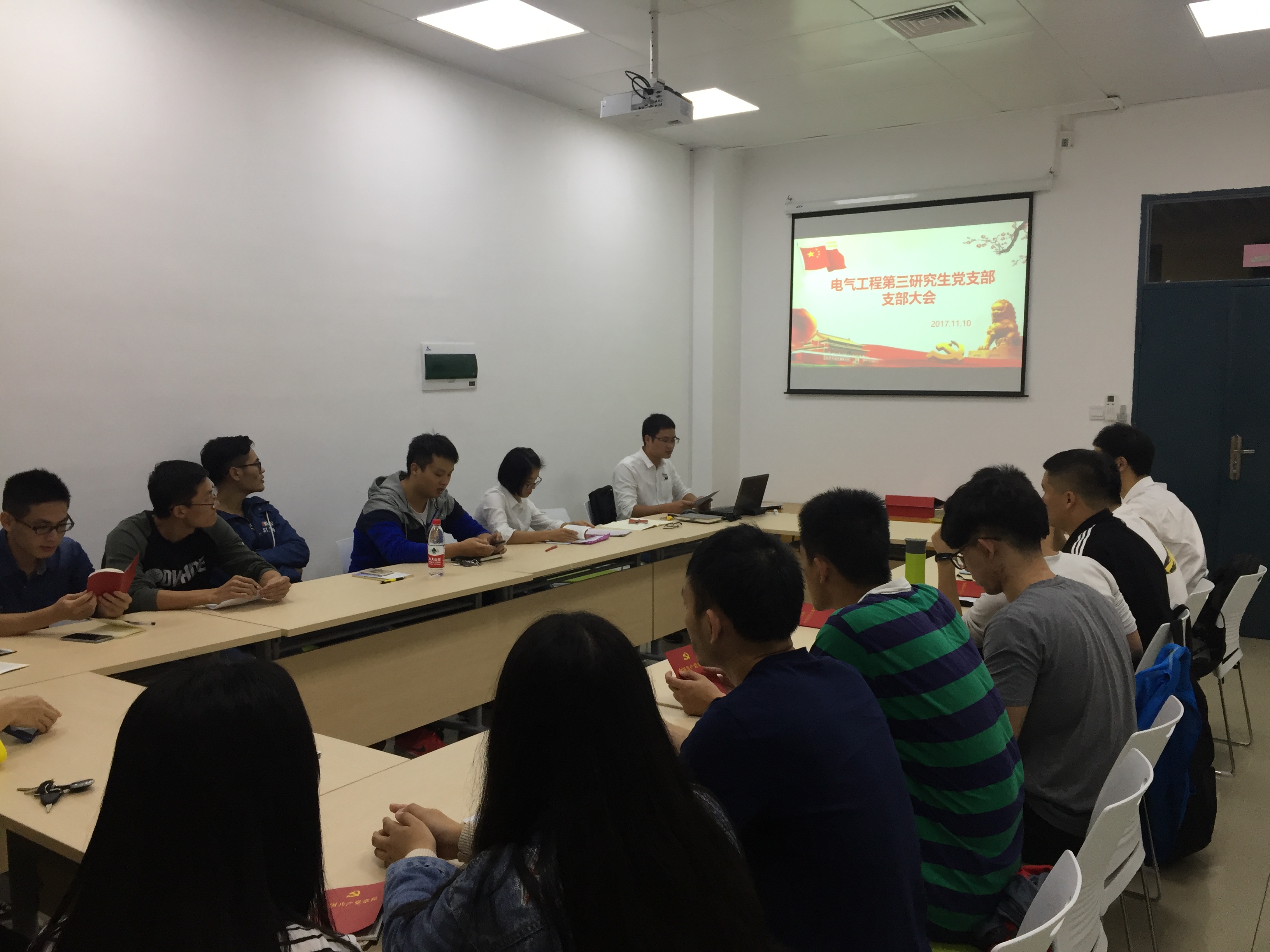 2017年11月10日晚六点三十分,电气工程第三研究生党支部学习党的十九大精神暨新老生党员交流会在成人影视片