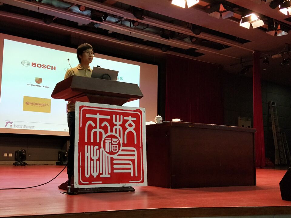 魏震学长以自己在德国的求学经历以及德国的人文风情开始自己的演讲,并借此向学弟学妹们强调了语言学习的重要性。他提出学习外语的好处有三点:一、当你能用一门外语表达自己的想法时,你就多了一份自信,也多了一份机会。二、外语潜移默化中打破我们固有的思维习惯,给我们带来新的思维方式。三、外语让我们更理解另一个民族,一个民族的特点其实都融合在他们所说的语言里。