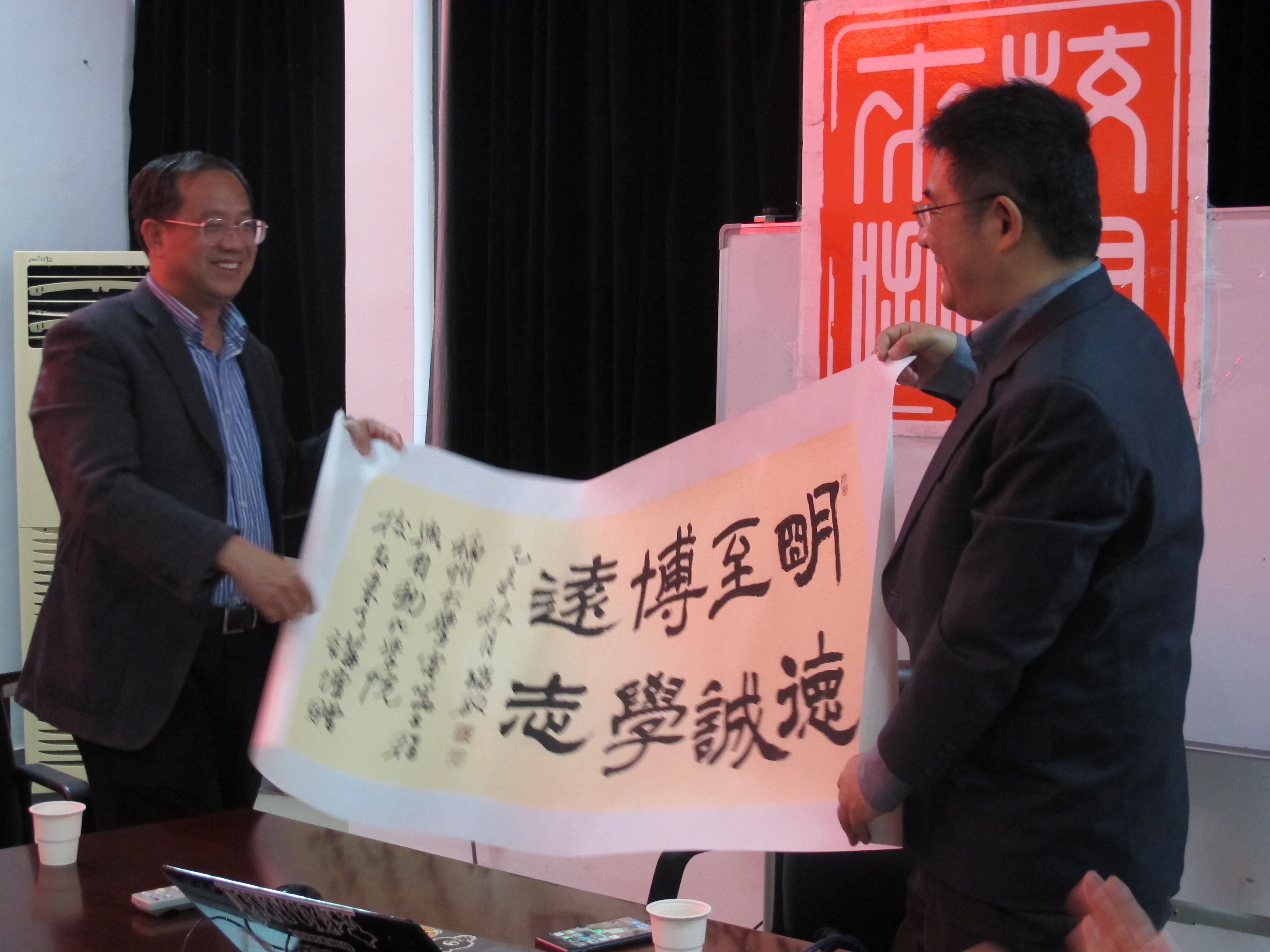 整场论坛有序进行。在自由提问环节,同学们都积极踊跃提问,两位嘉宾也热情地深入的分析解答。最后,两位校友在红本上留下了自己的寄语,整场讲坛在掌声中落幕。