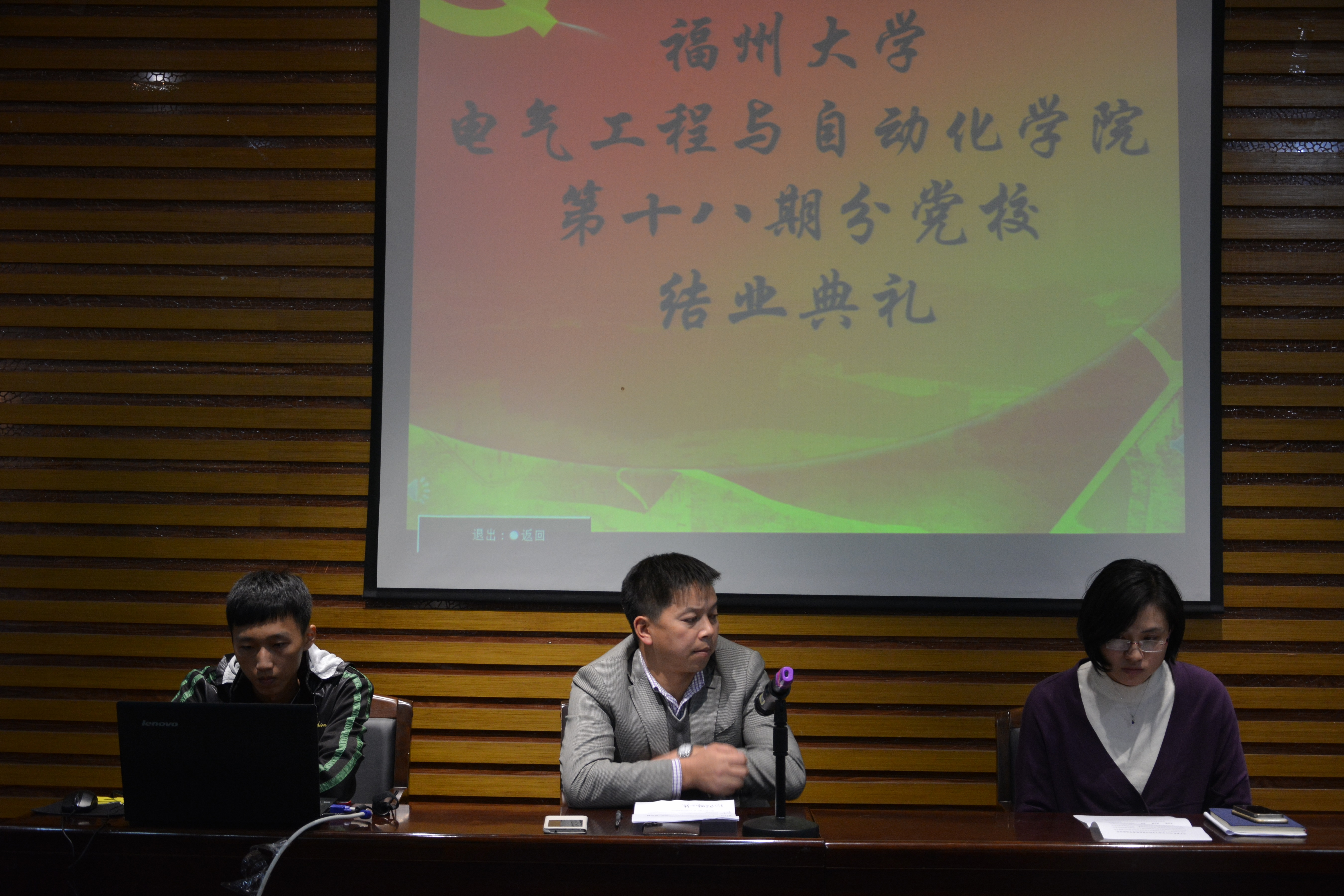 随后,黄国辉老师对本期分党校圆满完成培训任务以及积极分子们的顺利毕业表示了祝贺。黄书记指出,这次分党校培训期间,学员们能严格遵守党校纪律,上课认真听讲,积极做好听课笔记,讨论时踊跃发言,表现了广大学员良好的精神风貌。他希望大家以这次培训班为新的起点,继续加强理论学习和实践锻炼,争当“电气好青年”,并且要进一步端正入党动机,在学习和工作中要按照党员标准严格要求自己,自觉接受党组织的考验,以实际行动争取早日入党。