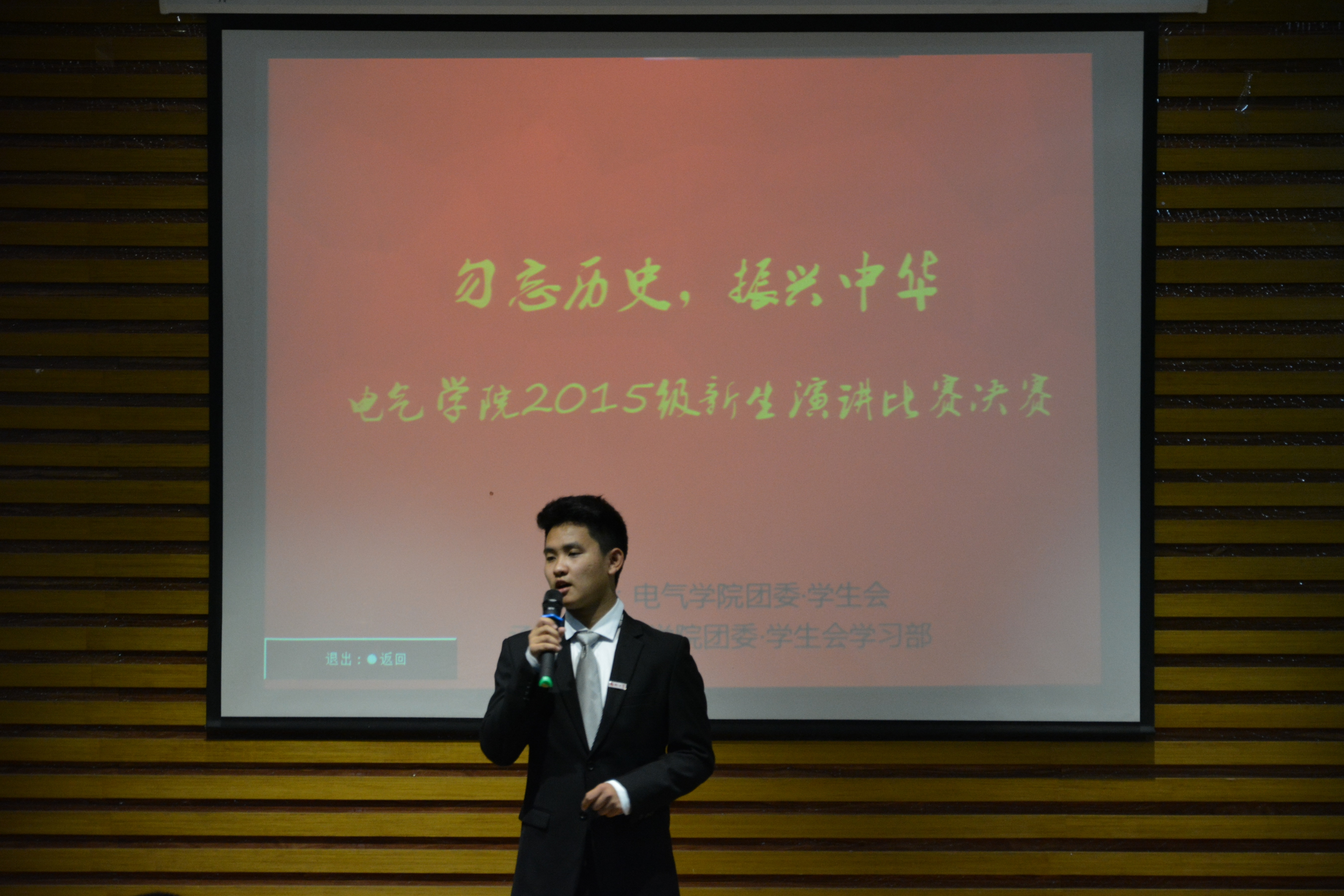 本次演讲比赛的举办,旨在提供给2015级新生一个展示自我、锻炼演讲能力的舞台,更重要的是为激发电气学子的爱国热情,铭记历史,弘扬抗日战争精神,为中华民族的振兴贡献自己的一份力量。