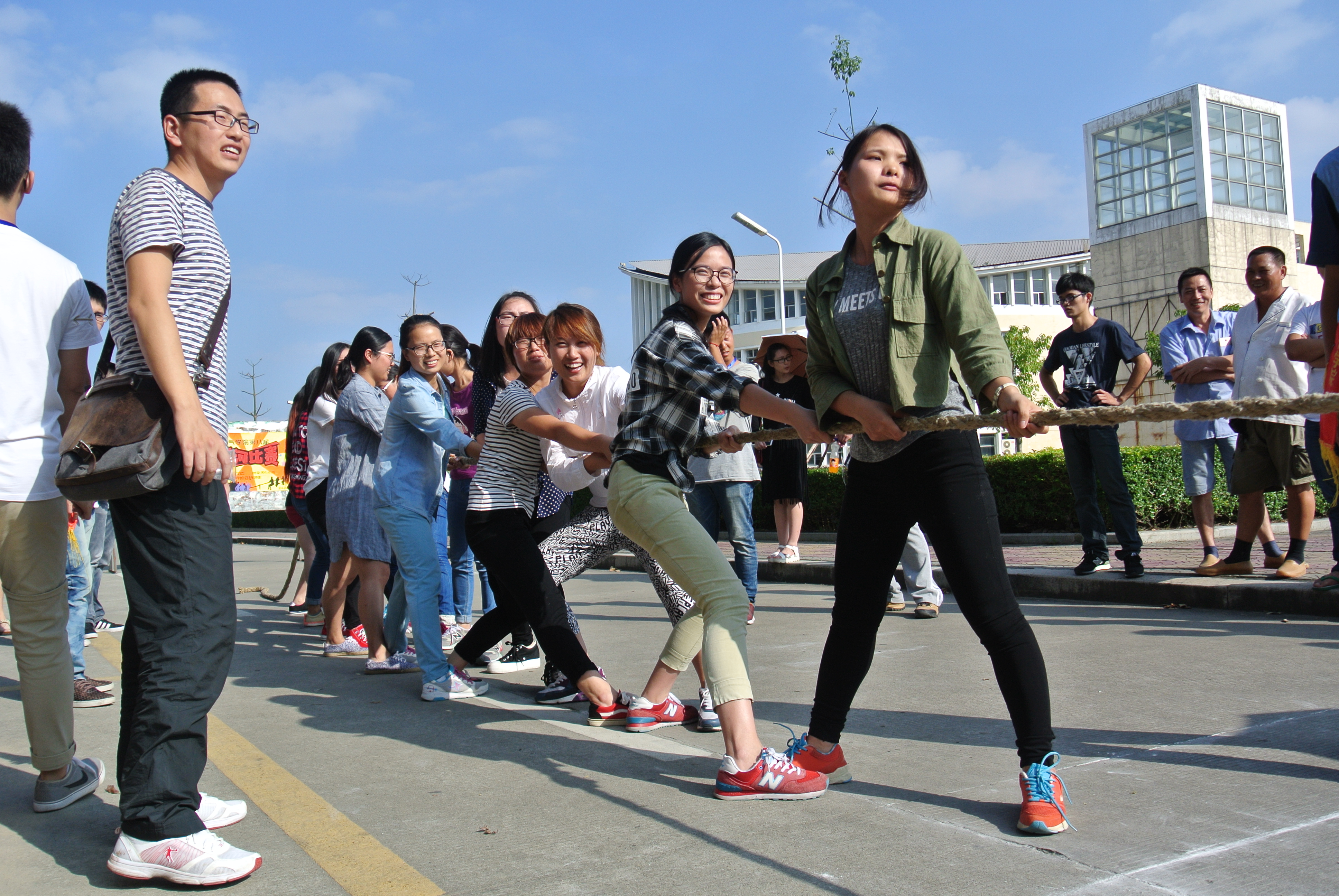 一条长绳把一群人紧紧的连在一起,一声哨响,人人用力。在这短暂的时刻,大家都为着一个共同的目标。满腔热枕,彰显了研究生的精神----爱拼才会赢,爱赢才会拼!