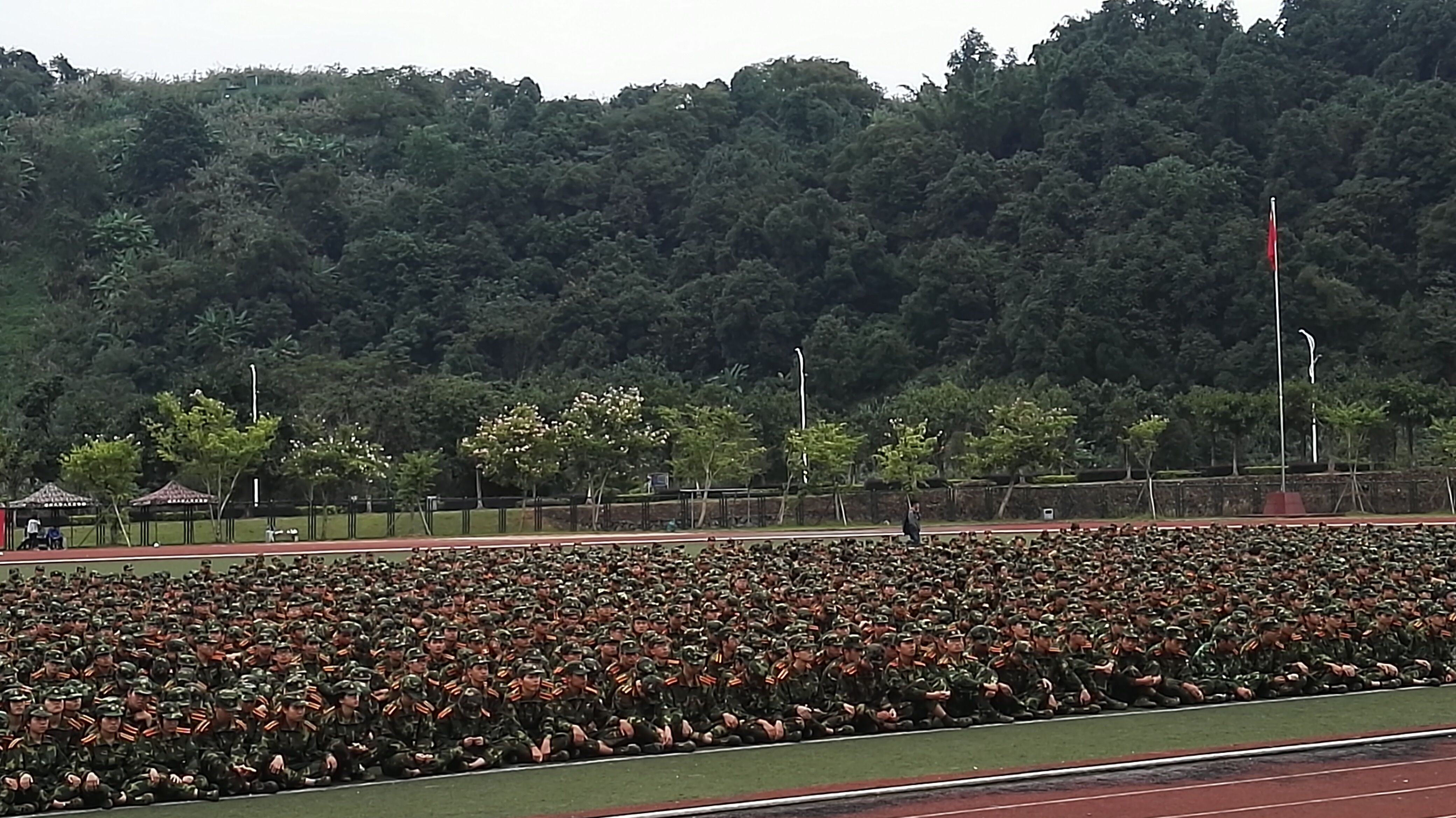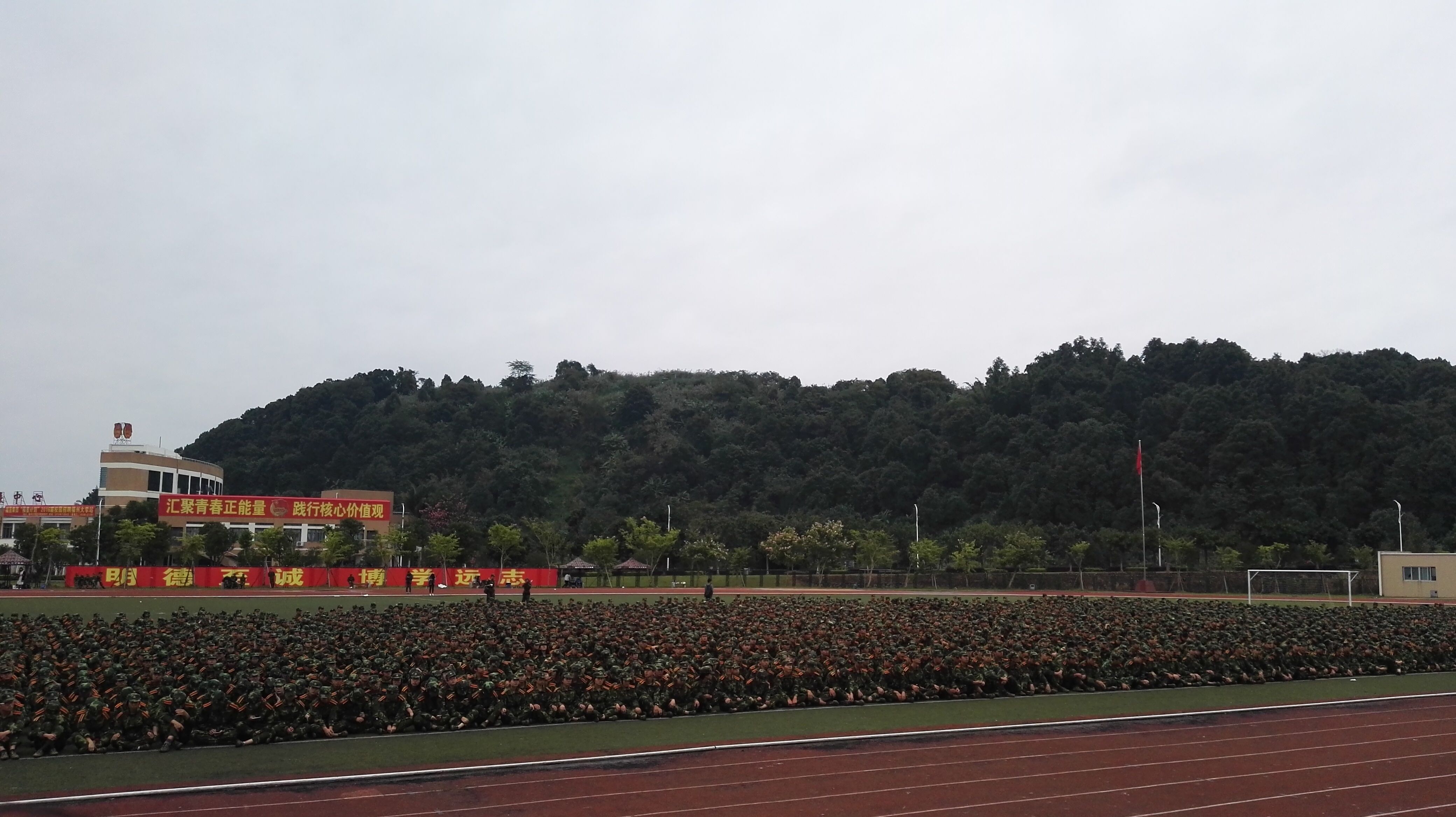 11月1日早晨,新生军训会操暨表彰大会在一区体育场举行。片片云朵飘满福大的天空,秋日里阴凉的风吹得人们瑟瑟发抖,运动场上的一块块绿色方阵却巍然不动,像士兵们在等候命令。