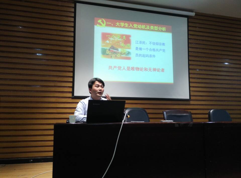 开班典礼结束后,第一节党课正式开课。校组织部科长柯江锋老师开始了以“端正入党心态,争取早日入党”为主题的第一节党课的授课。柯江锋老师从当代大学生入党动机的调查报告分析切入话题,为迷茫的大学生指出了正确的入党动机:全心全意为人民服务,不惜牺牲个人的一切,为实现共产主义奋斗终身。强调了端正入党动机的重要性,指引入党积极分子通过实践锻炼,认真学习马克思主义理论,自觉接受组织的考察和培养三个方面去端正入党动机。课堂最后,老师还与学子们共勉了四句话,激励大家积极向上,努力学习,脚踏实地做自己,并由衷祝愿大家早起入党。97名入党积极分子认真听讲,记录笔记,在老师们的引领下对党也有了一个新的认识。