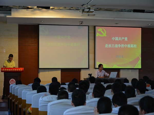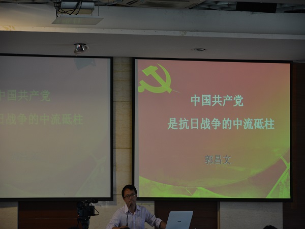 讲座伊始,郭昌文教授通过三“看”,看立场,看贡献,看前途来论证了中国共产党是抗日战争的中流砥柱这一观点,他的演讲字字有力,句句铿锵,带动起听众激昂的情绪。并通过具体的事例使同学们对中国共产党在抗日战争中扮演的角色有了更具体深切的体会。最后,郭昌文教授结合历史与自身体会提出他自己的三点认识,为本次的演讲做结束语。