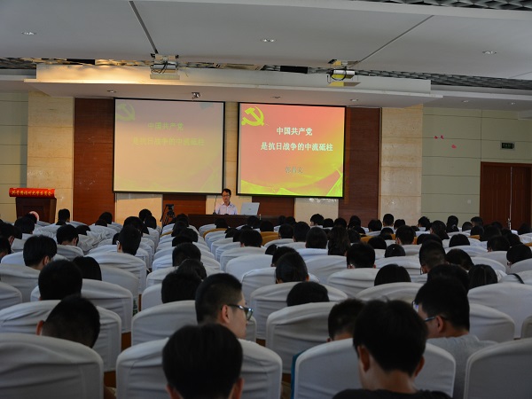 在素拓二楼科报厅邀请了马克思主义学院郭昌文教授为2015级新生做“中国共产党是抗日战争的中流砥柱”主题讲座。讲座由2015级新生辅导员沈庆斌老师主持。