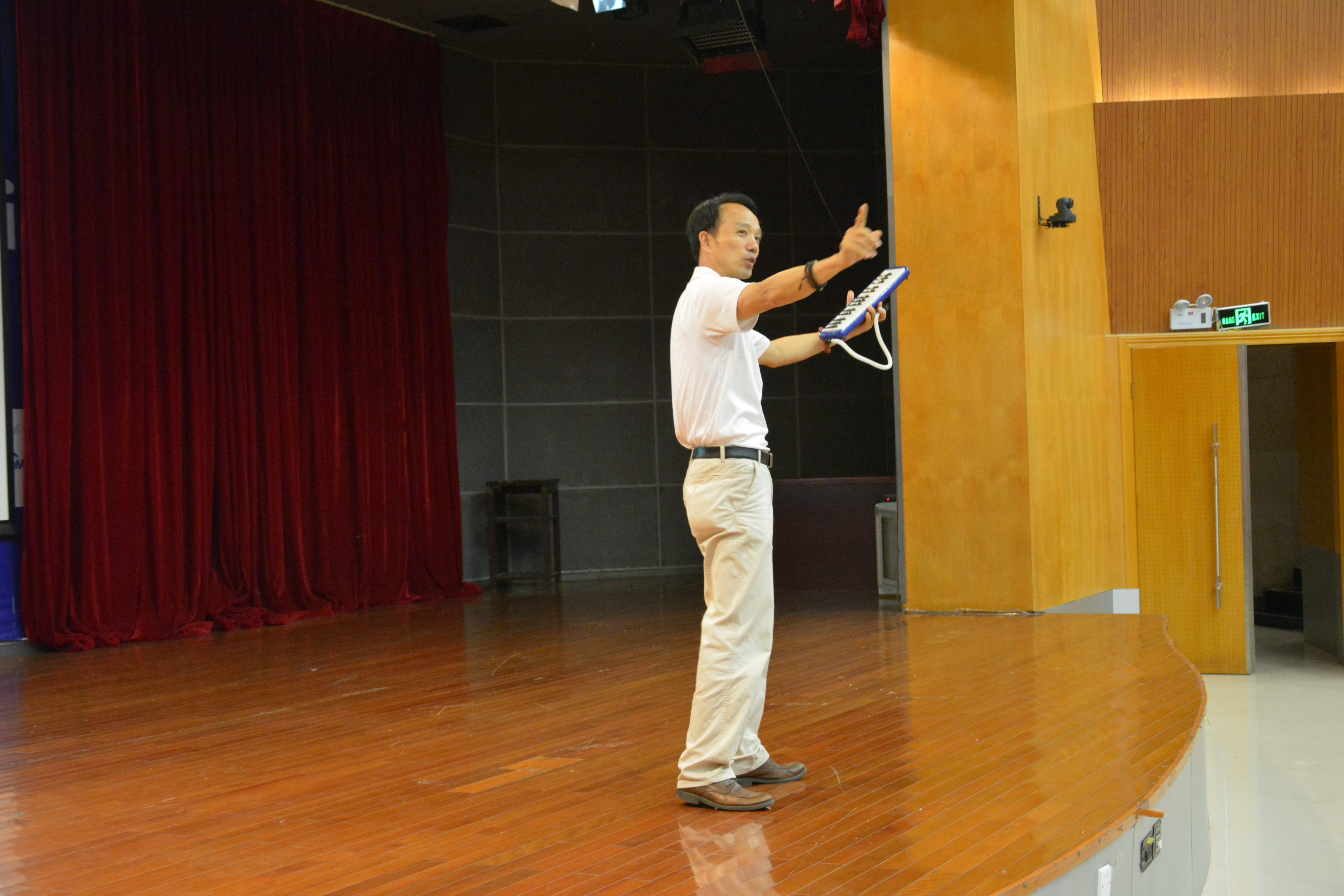 邱教授从讲座的题目中提取了音乐、动力、左右与压力四个关键词来为同学们讲解。首先,邱教授从音乐角度引入今天的讲座,提出“音乐是声音的艺术”的观点,并从听、观、动、写四个方面来为同学们解读音乐。值得一提的是,在现场教授准备了口风琴,他请同学们闭上眼睛,为同学们现场演奏了一段悠扬的《我和你》,同学们在乐声中深深陶醉。之后,教授为同学们分析压力的来源,即现代生活中每个人有三个压力源:社会,生活和竞争。当代社会人们面临前所未有的压力,因而更应该明白如何正确利用音乐缓解压力。整场讲座在互动中进行,教授轻松幽默的讲说方式,使现场气氛十分快乐融洽。作为拓展,教授最后给同学们介绍了一些心理康复方面的知识,在一片热烈的掌声中,本次讲座圆满结束。