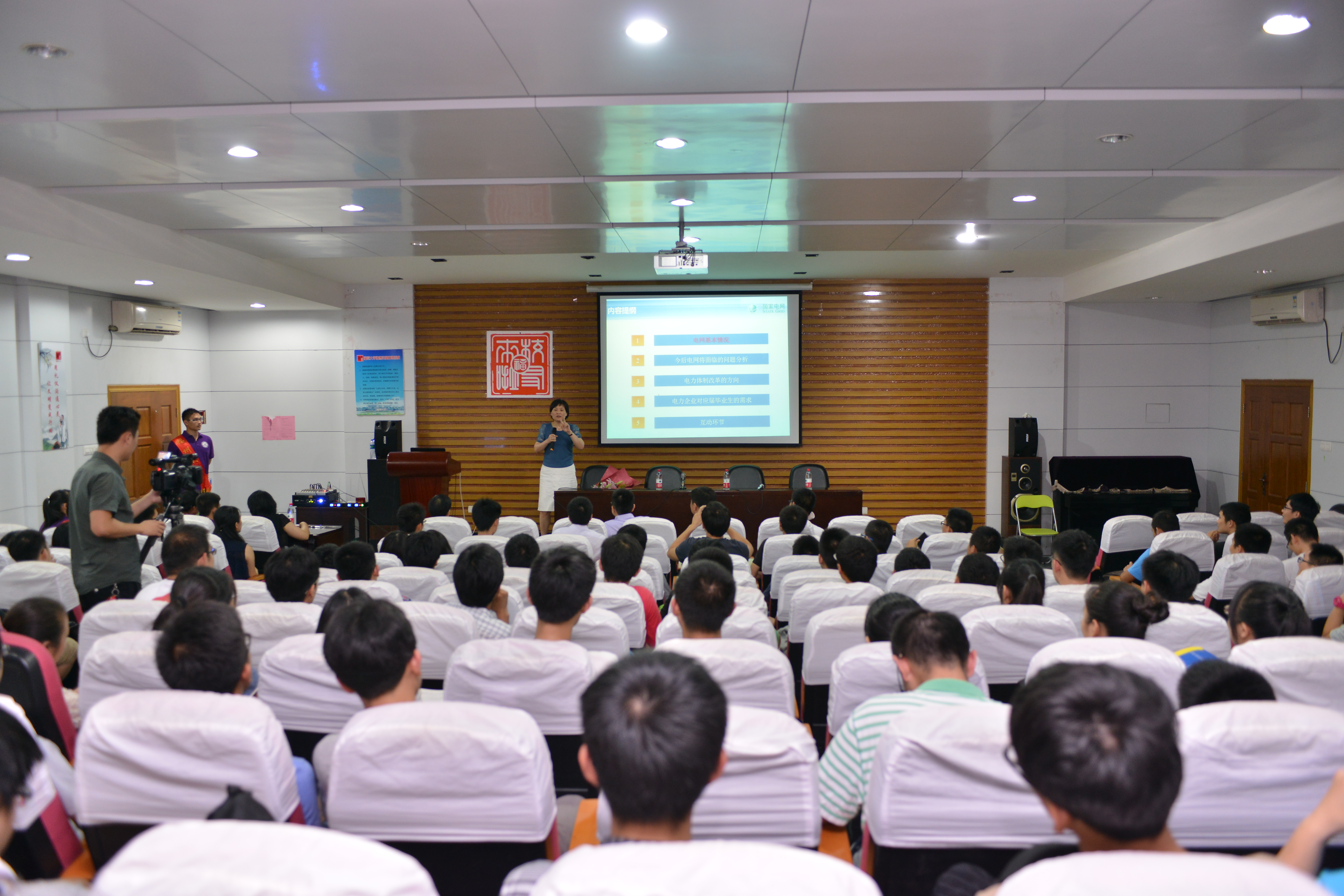 杰出校友、现任国网福建省电力有限公司副总工兼福建电力调度控制中心主任黄文英女士主讲,到场嘉宾有成人影视片