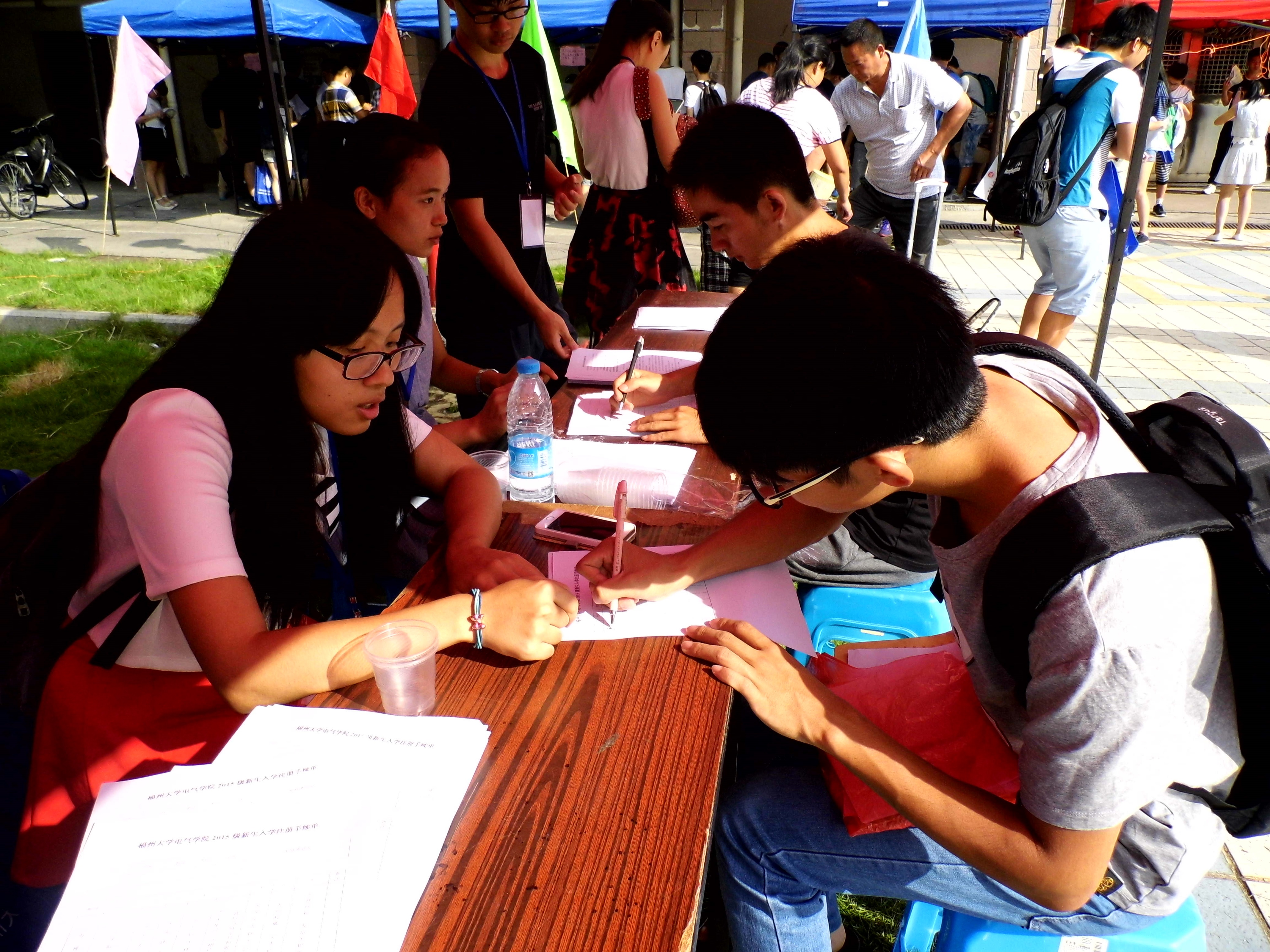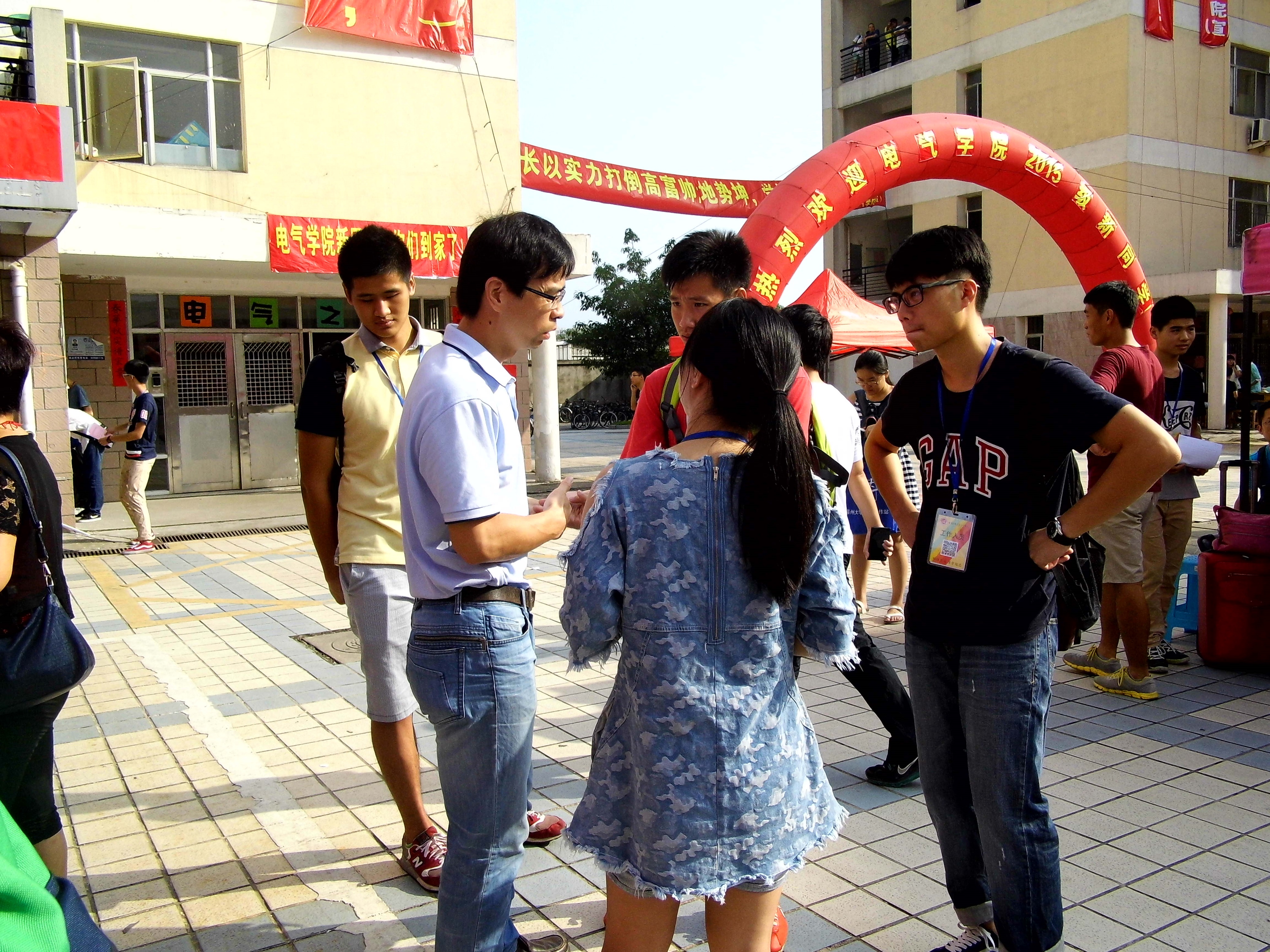 领导对新生报到相当重视,在现场亲自指挥迎新工作,强调工作要做到位,做到保质保量。在迎新现场里,我们还可以见到一群态度亲切,待新生如弟弟妹妹一般的工作者——班导。在随后开始的大学生活初期,班导会为新生答疑解惑,带领新生了解熟悉并投入到大学生活中。报名表一张一张被填满,时间也一秒一秒地流逝。下午4点,新生报到工作落下了帷幕,新生们的大学四年生活也由此展开。
