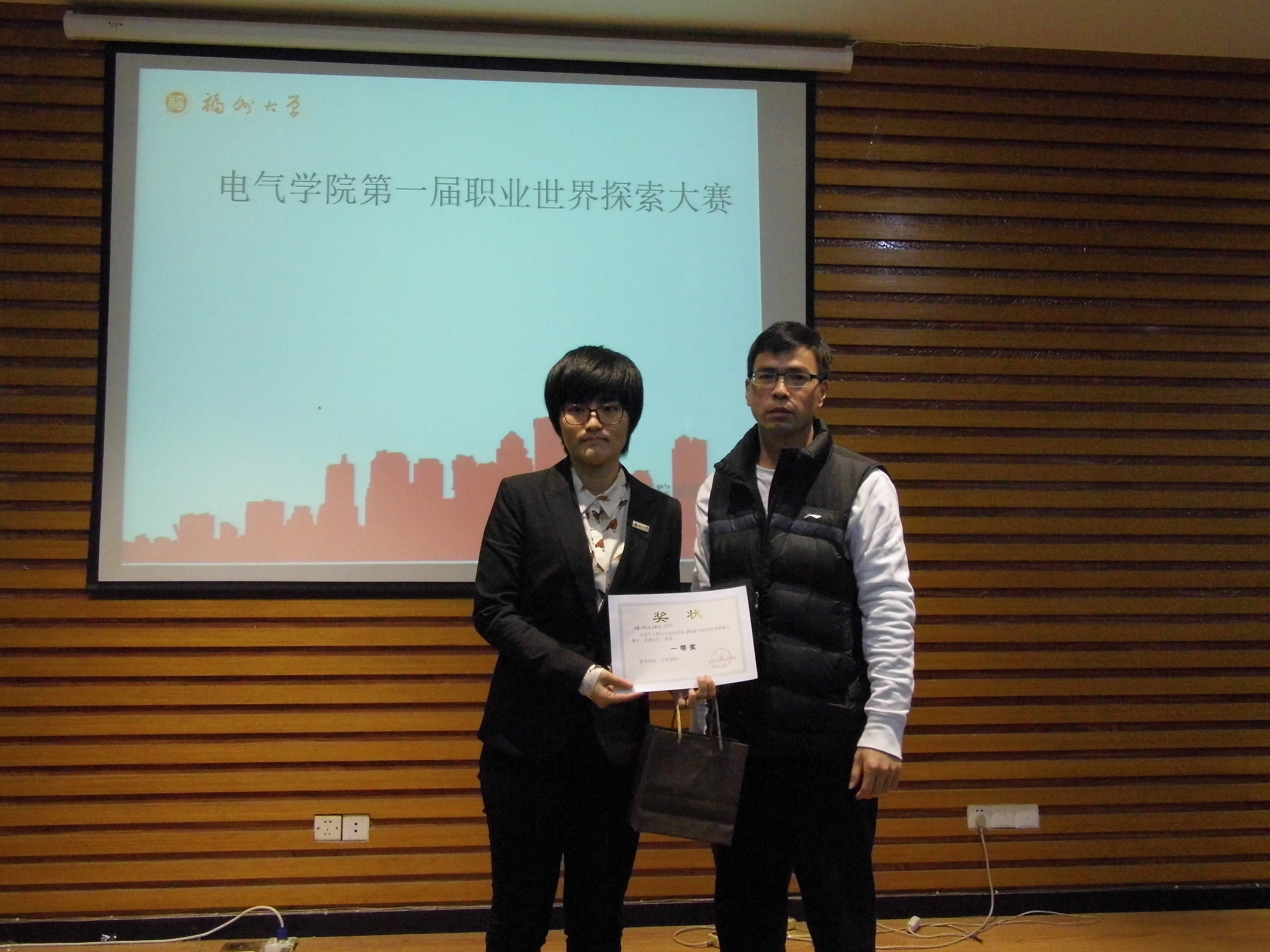 此次大赛以“洞悉行业发展,展望职业未来”为主题,以团队为参赛单位,通过初赛比试选拔评选出的八支队伍在决赛中争夺三个入选校赛的机会。决赛中各团队通过作品展示和公开答辩两个模块向评委和观众感悟分享他们对职业世界探索的成果。在作品展示环节,各团队或中规中矩地通过人物访谈方式获取电气专业当前的就业状况;或利用网络来收集行业就业的相关数据,一目了然;或另辟蹊径通过情景剧的形式阐述了电气专业各个就业方向的工作岗位的职能,形象、生动地解释了各个复杂岗位的功能。而在公开答辩环节中,面对评委老师和观众们尖锐的提问,做足功课的各支队伍的对答如流也赢得阵阵掌声。经过一系列激烈的比拼后,电斯尼小组荣获一等奖,五人行及龙怡韬敏军两队同获二等奖,five o nine 、烁士生、电气四班探索小队则获得了三等奖。比赛最后,张志雄书记对各团队的优秀及努力表达自己的赞赏,同时对其存在的一些不足做了点评希望他们能再接再厉。