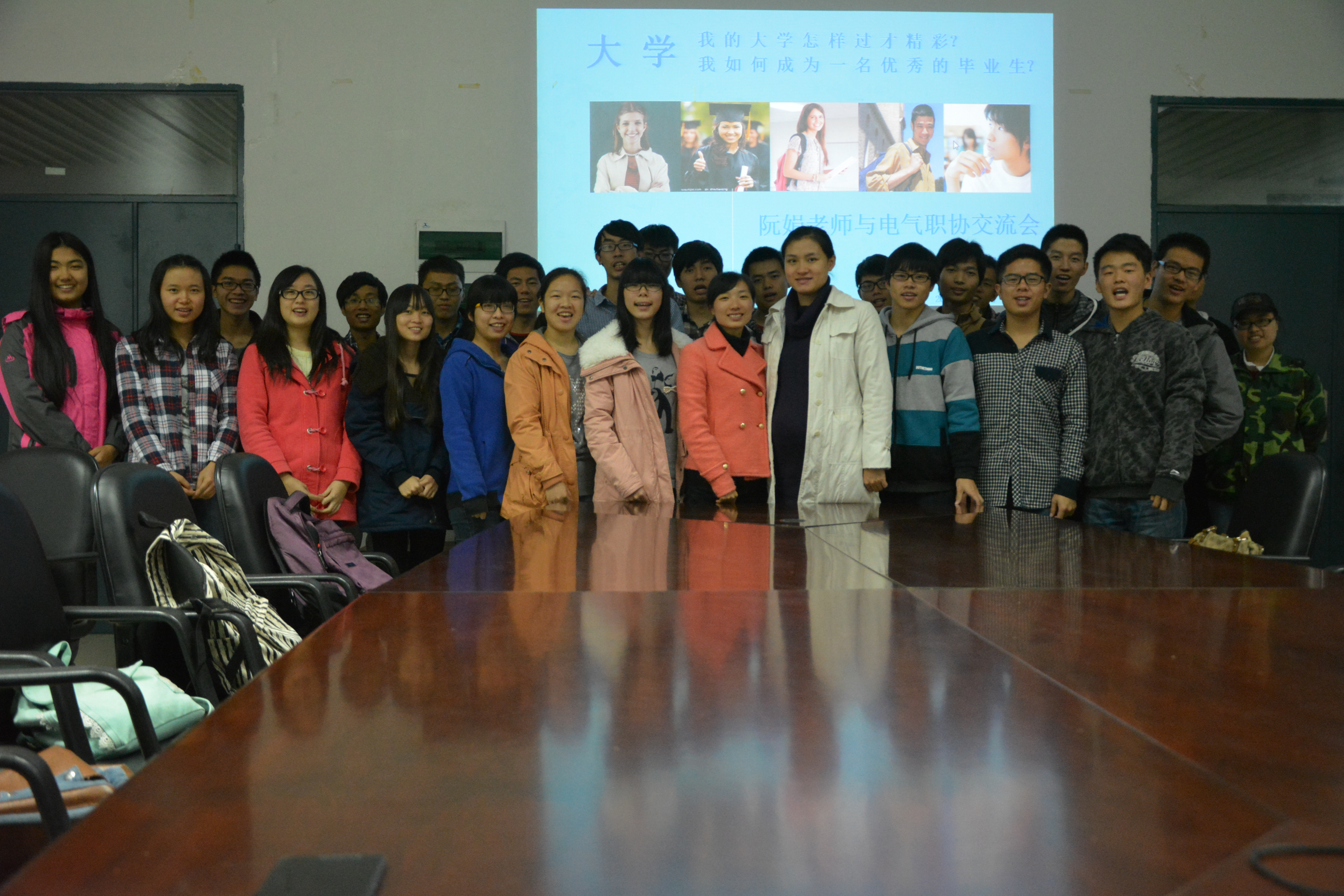 团委在学院的会议室举办了一场校就业指导中心老师和电气职协同学之间的交流会。此次交流会我们有幸邀请到了校就业指导中心的阮娟老师和成人影视片