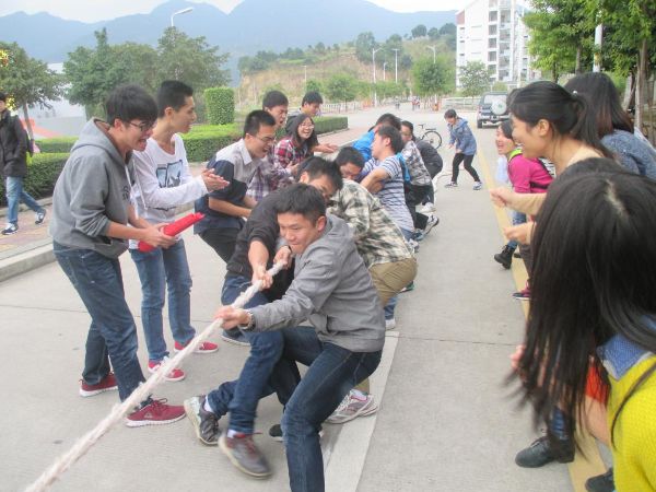 一条长绳把一群人紧紧的连在一起,一声哨响,人人用力,在这短暂的时刻,大家都为着一个共同的目标。满腔热枕迸发的爆发力,彰显了研究生的精神----爱拼才会赢,爱赢才会拼!