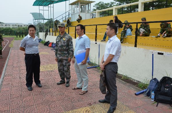 视察过程中,黄国辉书记与沈庆斌书记认真听取了二营营长对训练情况的汇报,了解了训练进展及新生受训情况。在2014级辅导员尹万东老师的陪同下观看了同学们的队列、军体拳训练情况。