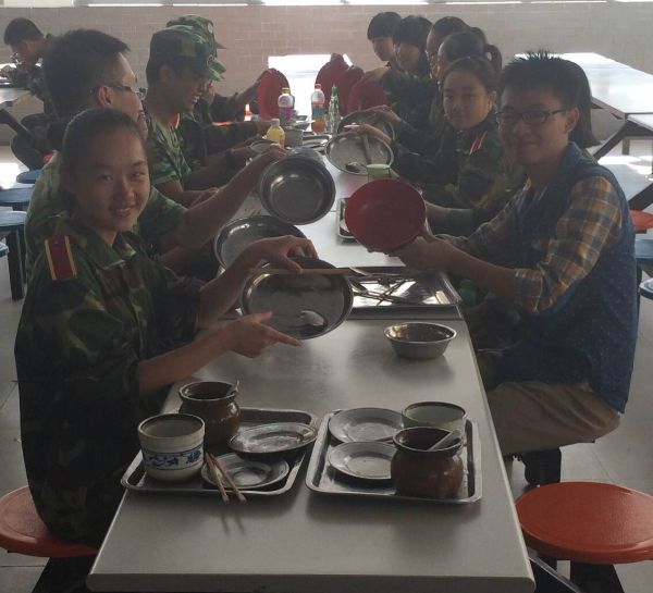 记者团采访了一名新生,新生说道:即使军训结束了,我们也不能忘记这种节约粮食的美德,我们应该在以后的生活中也做到不浪费粮食,将饭菜吃完。