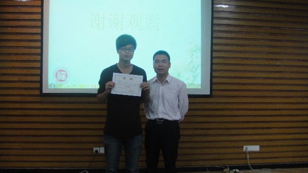 最后,2013级7班以最高分95.32荣获一等奖,2012级9班、2012级7班获得二等奖,2013级3班、2013级1班、2012级4班获得三等奖,2011级8班、2011级5班、2013级9班、2012级1班获得优秀奖。由受邀嘉宾为各获奖团支部颁奖。沈庆斌老师对各团立项活动进行了评价,表扬并肯定了一些班级在宣传方面的创举,并赞赏了2012级4班等班级条理清晰,感染力强的汇报稿以及2012级9班等班级在活动主题上的思考。